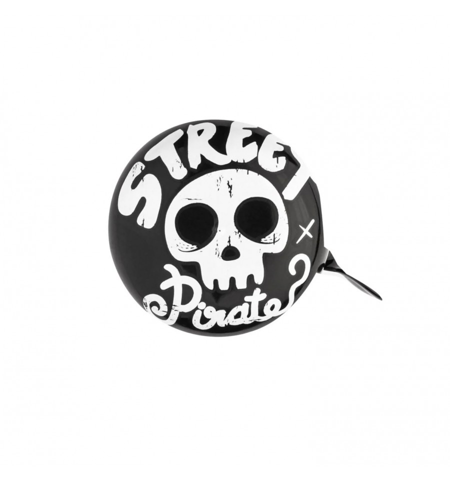 Cette sonnette en métal imprimée d'un crâne de pirate est effrayant ! Un parfait outil de ride.
