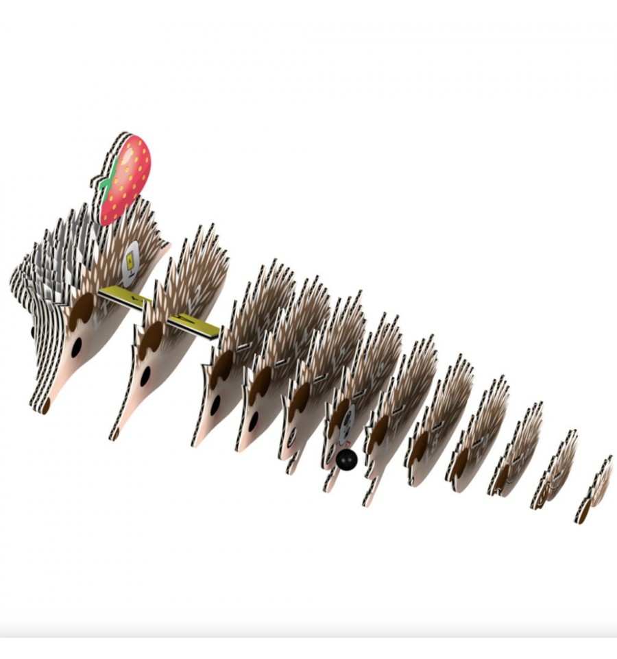 En suivant le guide d'instruction qui vous permettra d'assembler de simples pièces, vous verrez se former sous vos yeux ébahis un formidable hérisson et sa fraise en 3D.