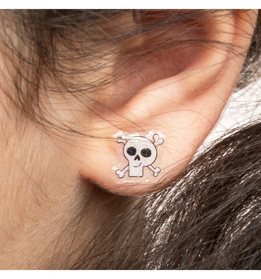 Cette planche de 60 boucles d'oreilles ravira les enfants qui rêvent de compléter leur déguisement d'Halloween !