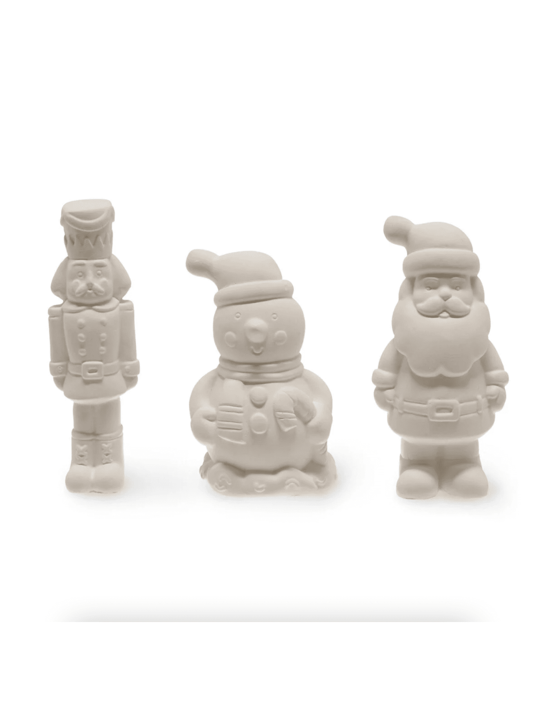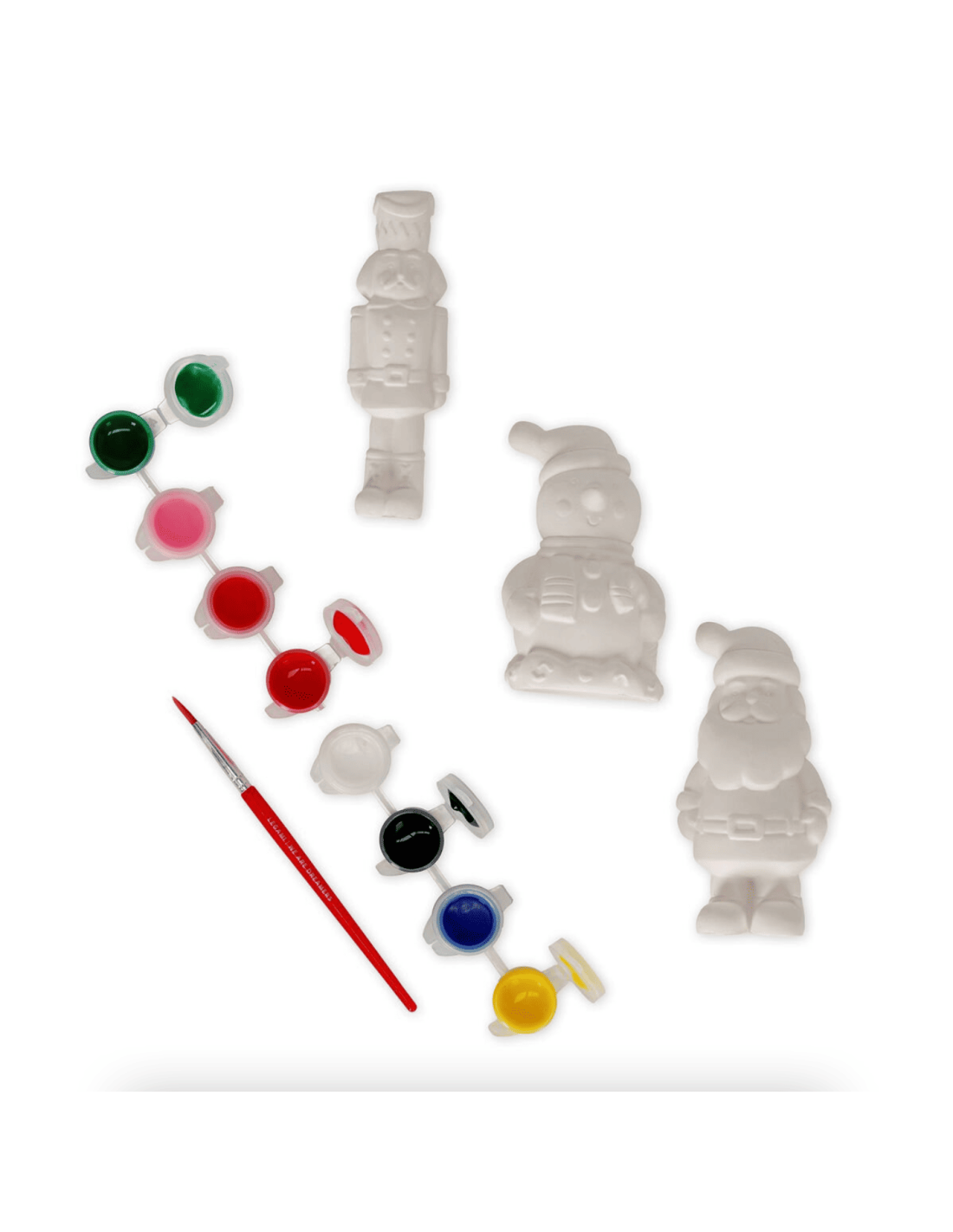 On a ce qu'il vous faut ! Amusez-vous à peindre ces 3 figurines emblématiques de Noël : un bonhomme de neige, un soldat casse-noisette et bien sûr, le Père Noël.