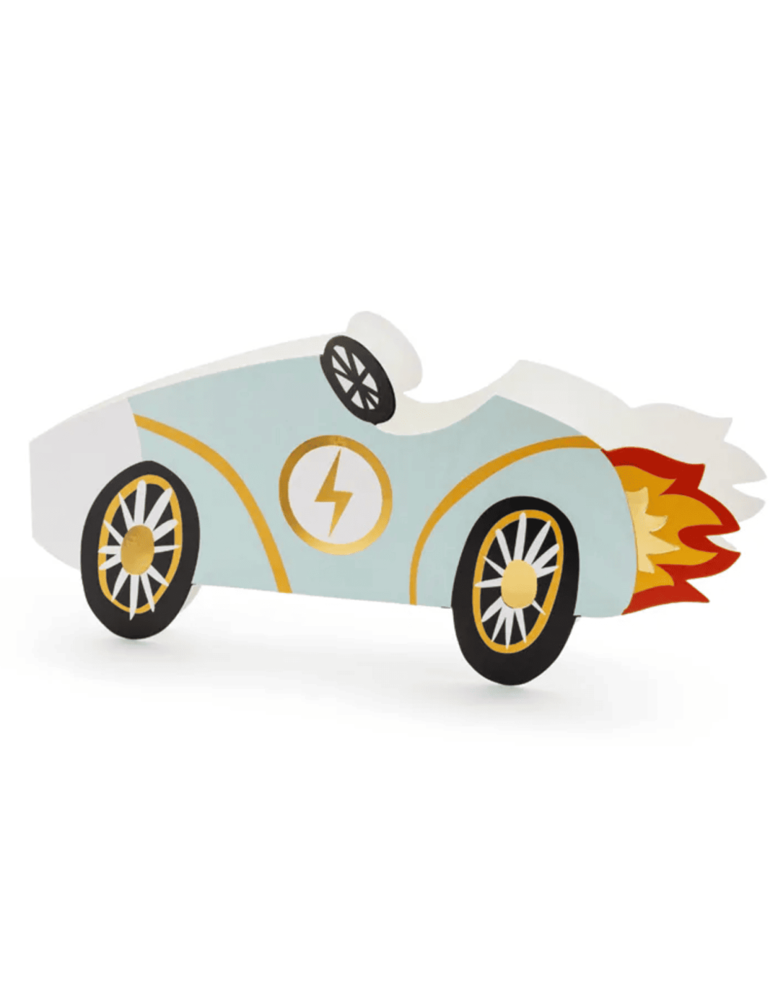 Avec leur forme découpée en voiture de course, ces invitations donnent immédiatement le ton de votre anniversaire.