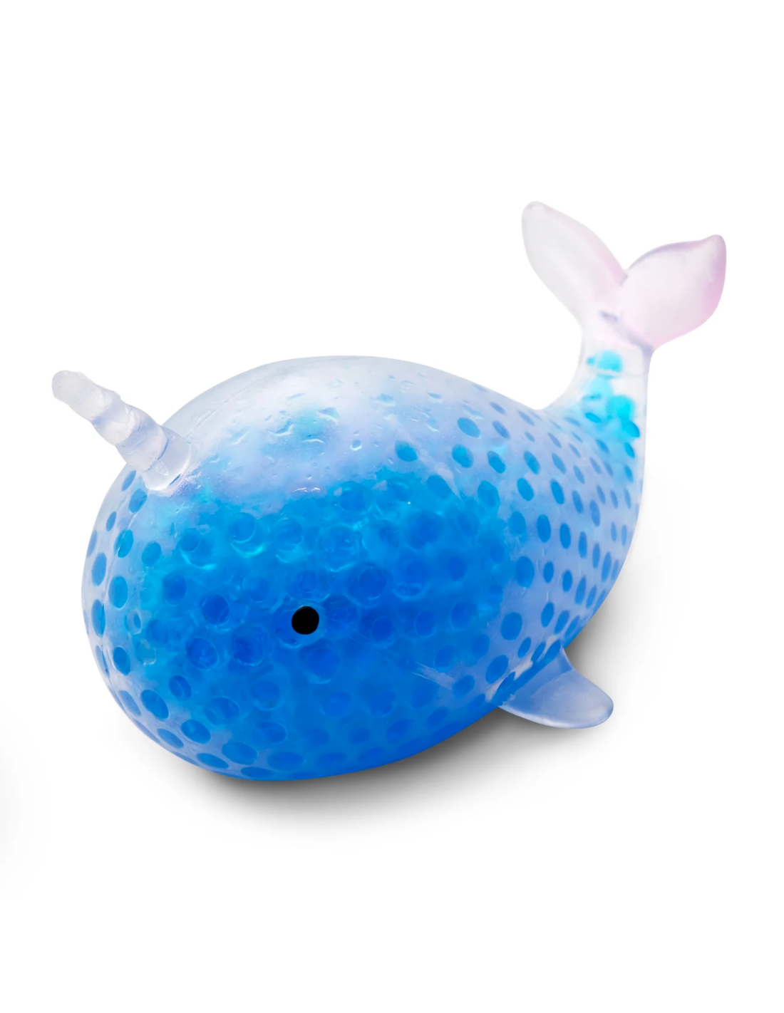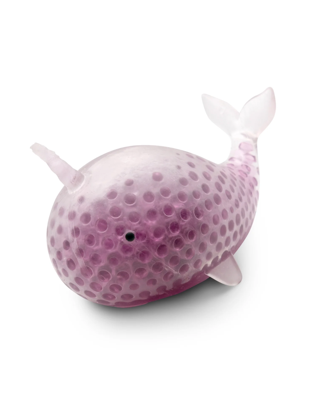 Cette balle anti-stress en forme de Narval est remplie de minuscules billes moelleuses.