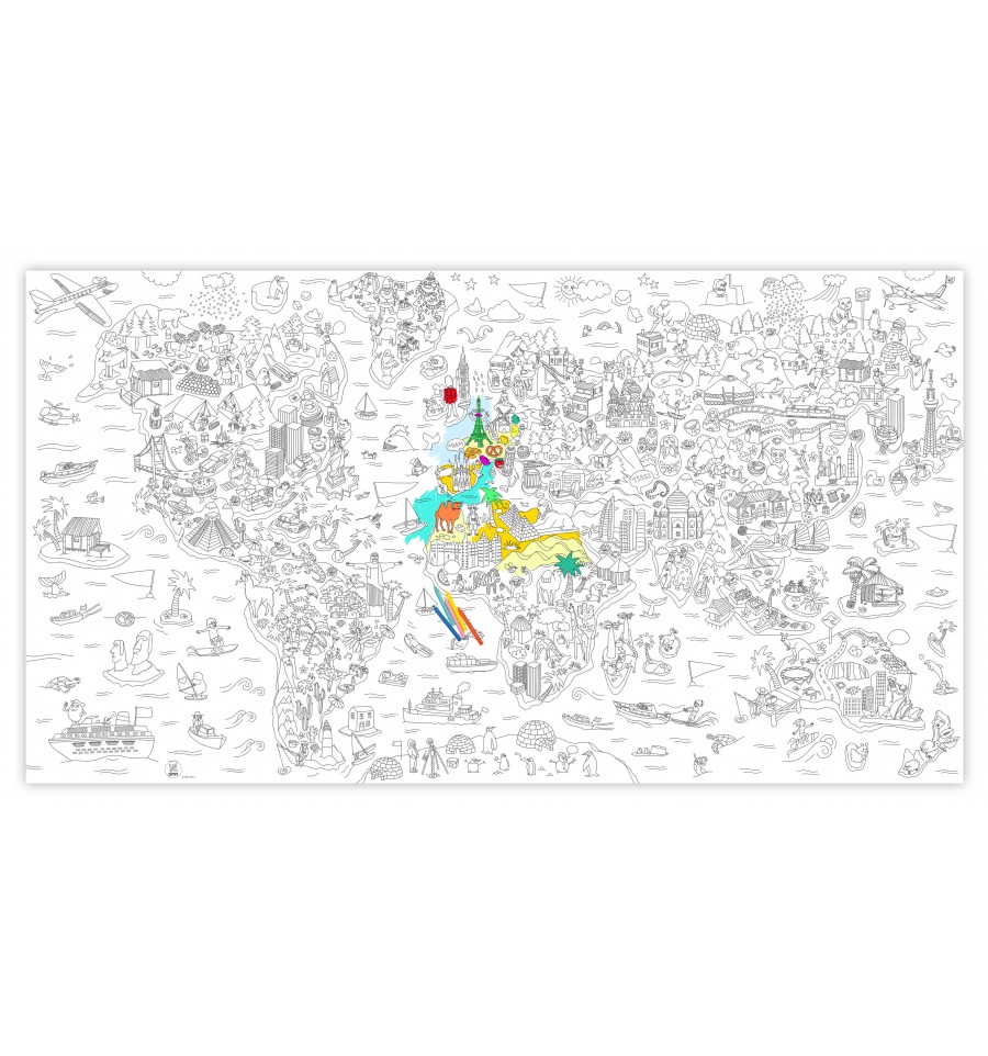 Un poster à colorier pour les fans de voyages et les globe trotters ! Voici un espace artistique sans limites (enfin presque !) pour colorier seul ou à plusieurs, à dérouler au sol ou à accrocher au mur.