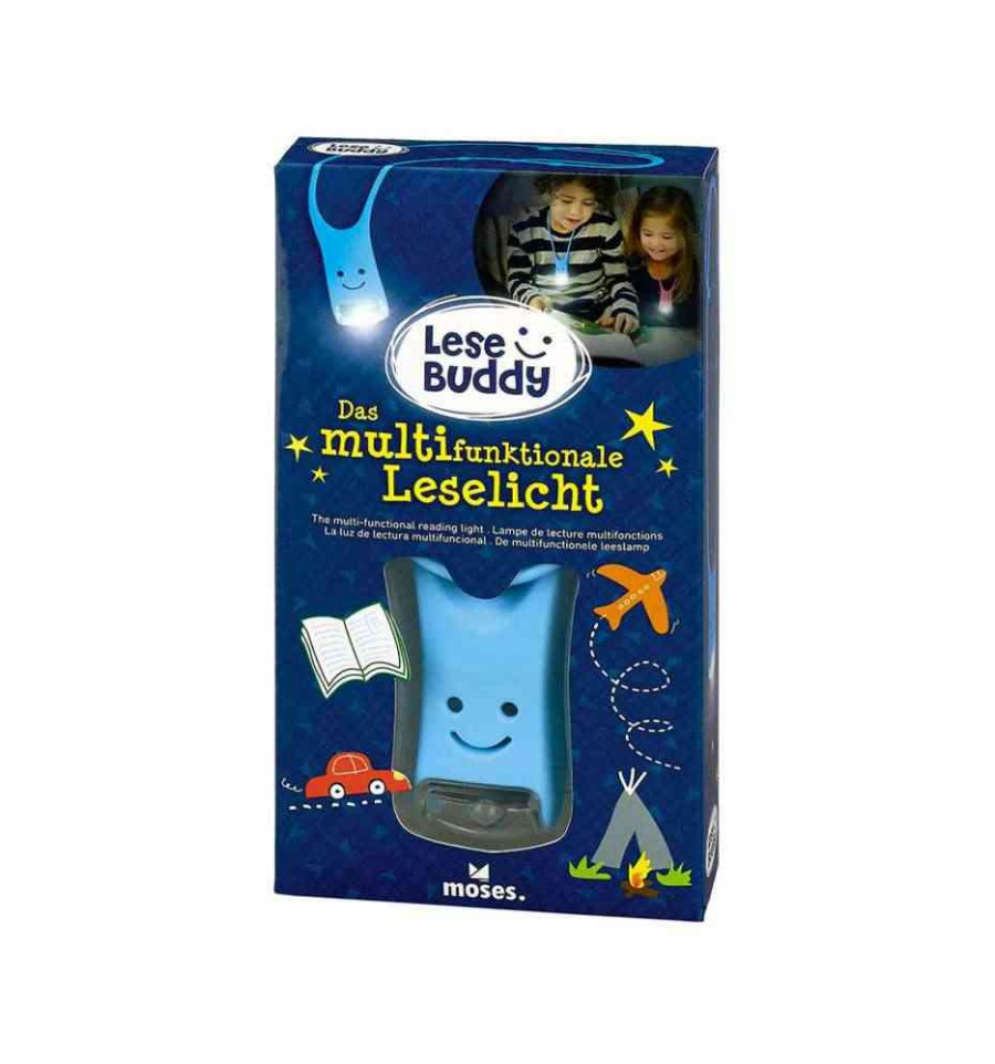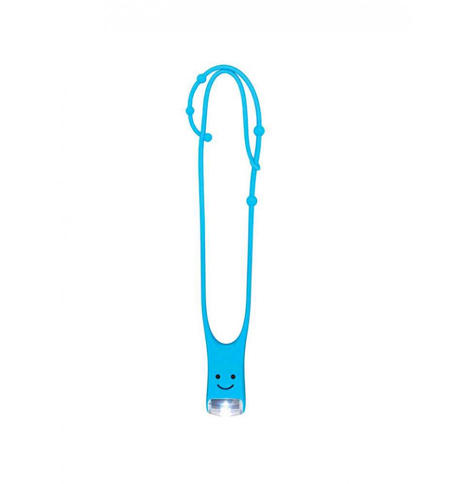 D’une belle couleur bleue, arborant un joli sourire et en silicone pour un toucher agréable et une protection contre les chocs, la lampe de lecture est un outil indispensable.