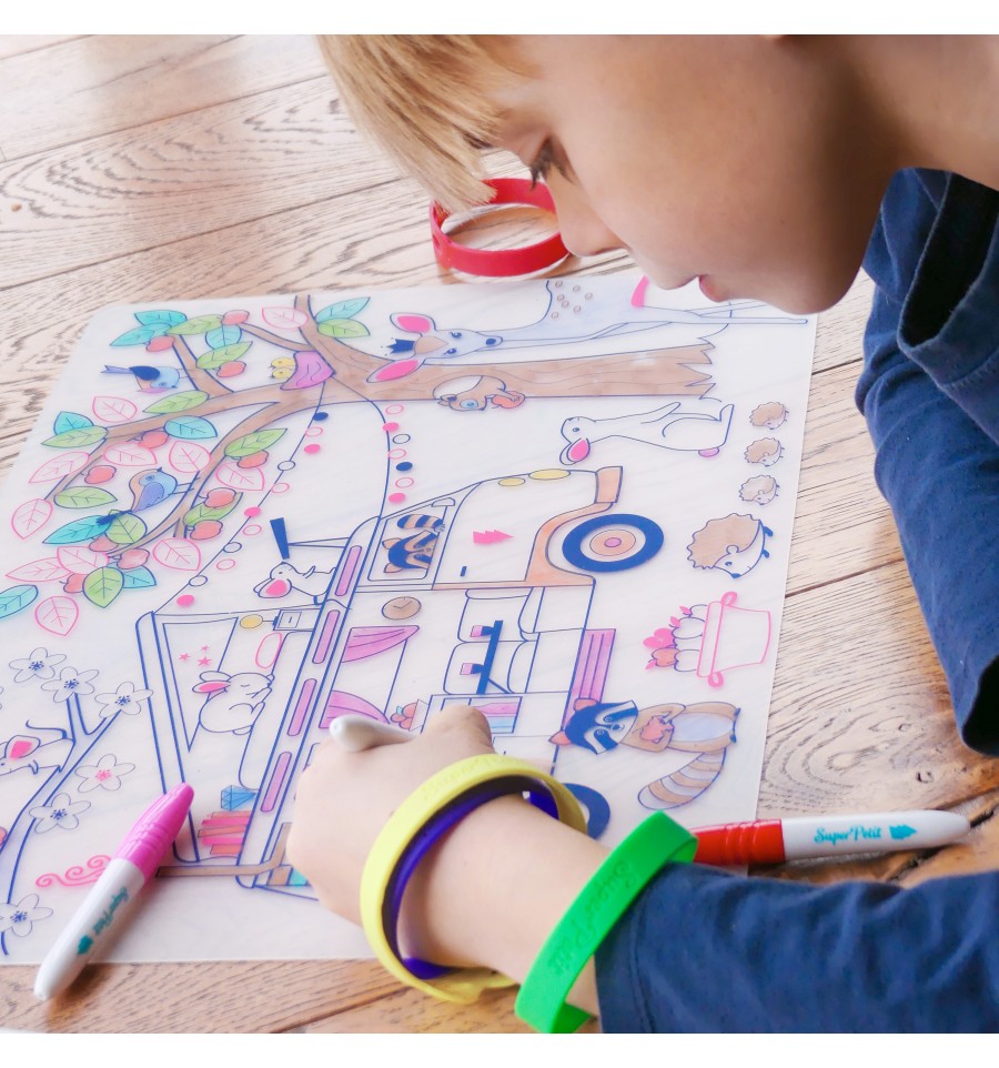 Les feutres fournis sont effaçables et non toxiques, on pourra recommencer son dessin autant de fois qu'on le souhaite.
