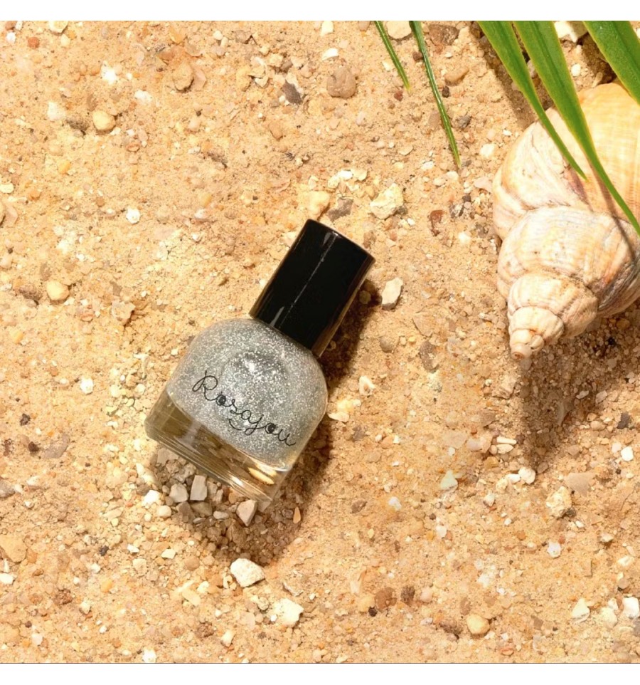 Ce vernis argenté est l'indispensable de Rosajou parce qu'il peut se mettre sur tous les autres vernis afin de leur apporter de la brillance et des paillettes !