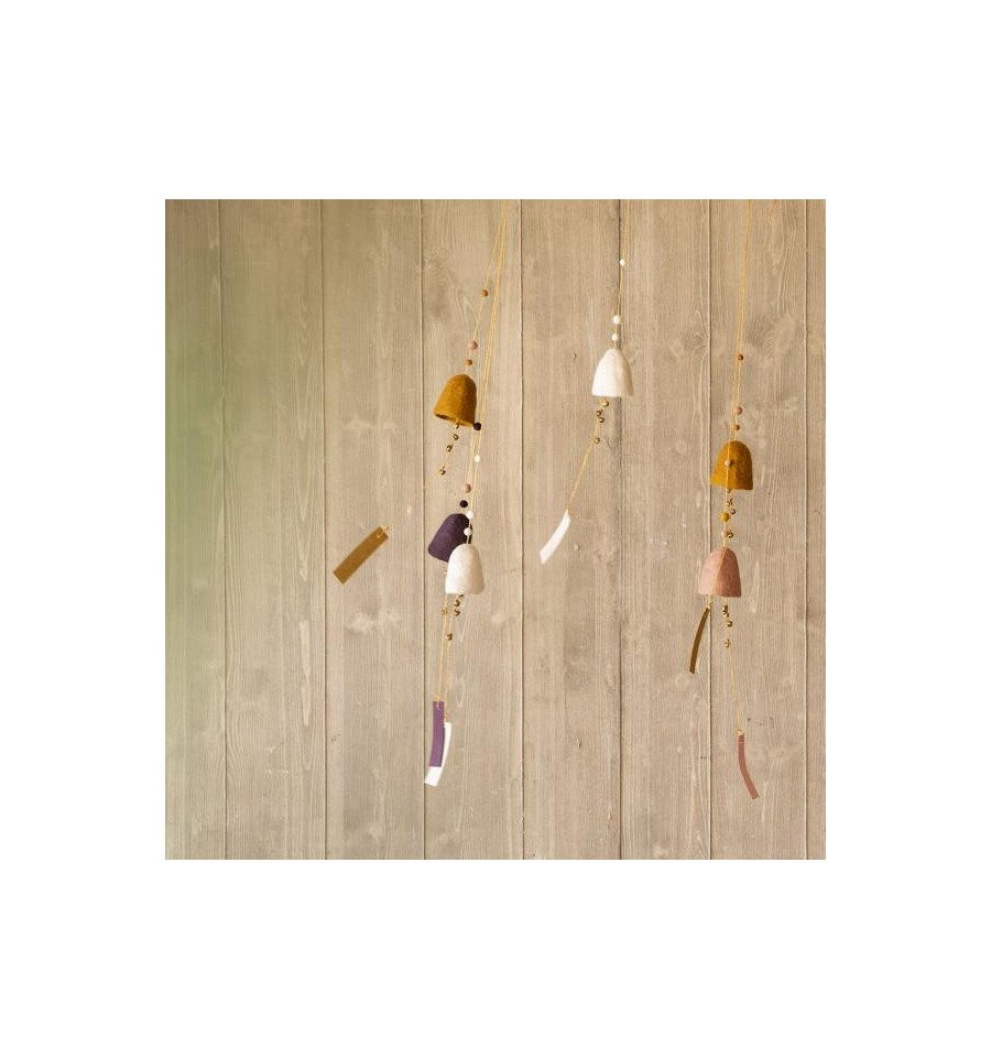 Laissez-vous bercer par la sérénité des temples népalais au son des grelots en laiton de cette jolie suspension cloche couleur or.