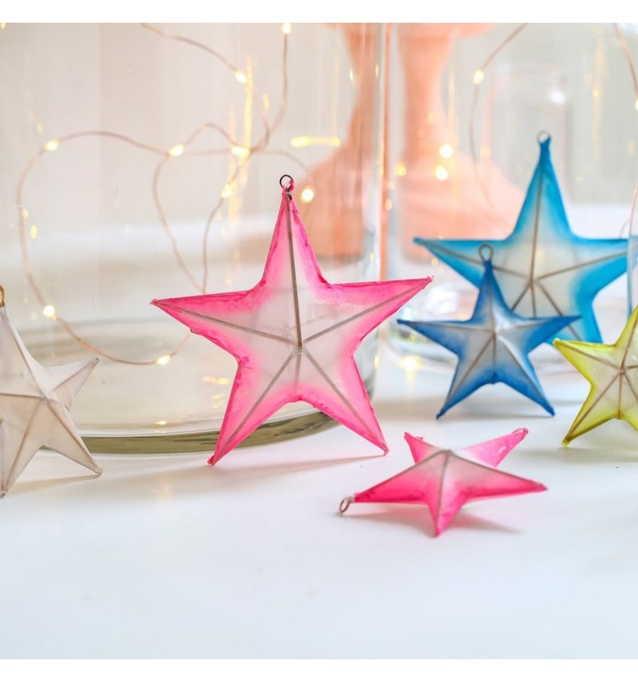 Faites d'un plafond un beau ciel étoilé et coloré avec cette petite étoile bleue en soie et bambou.