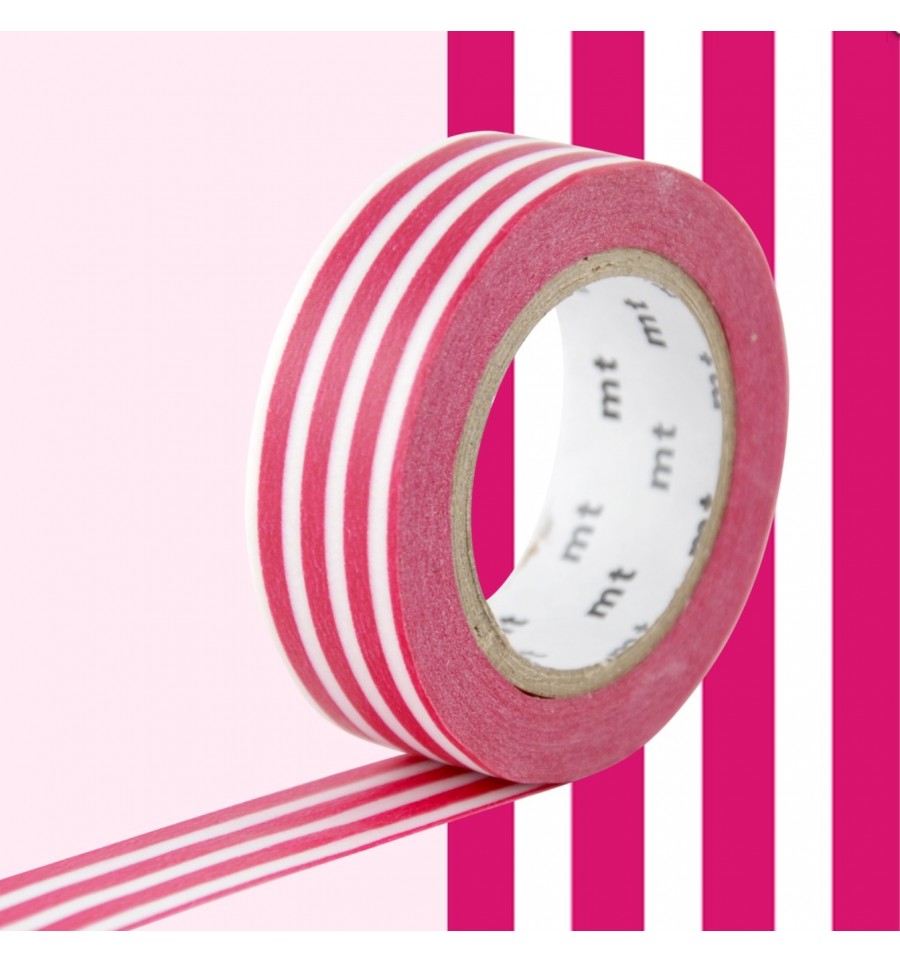 Masking tape rayures horizontales framboise