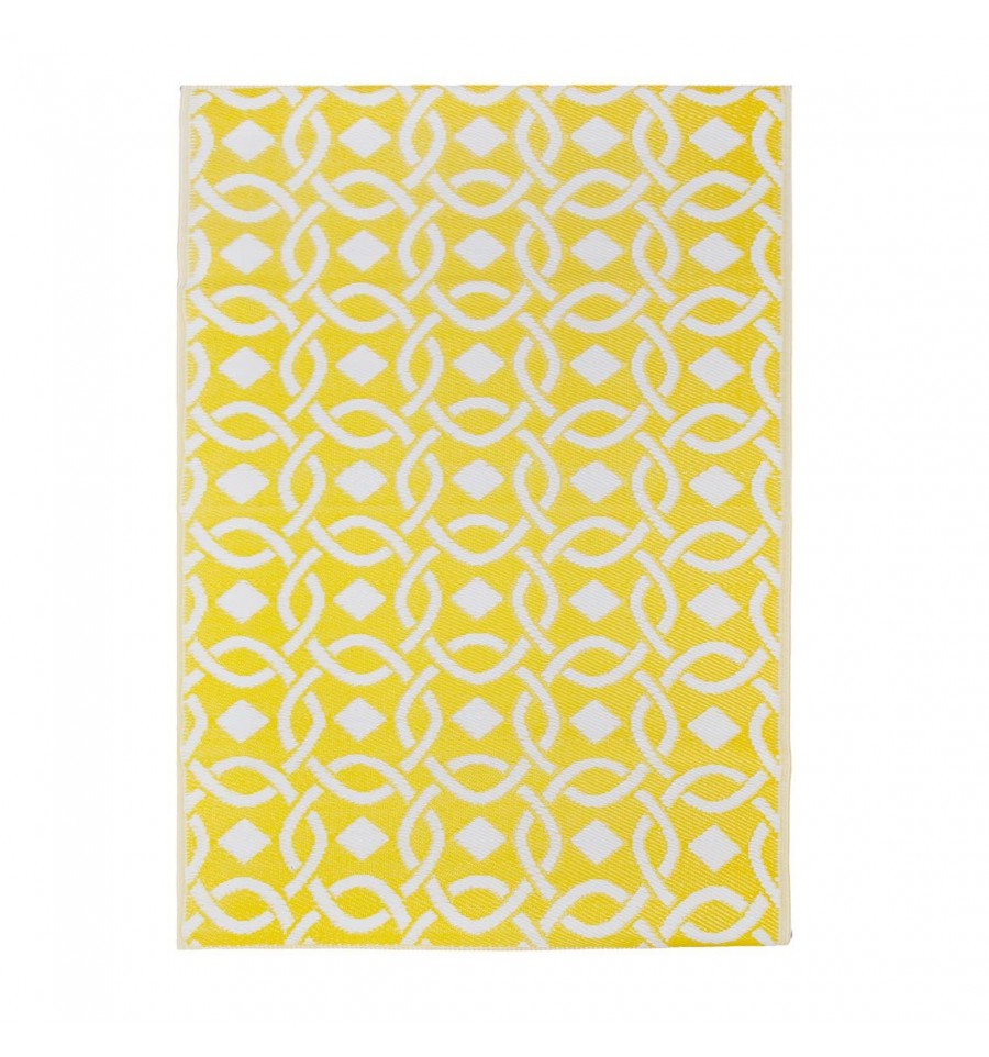 Ce tapis en plastique Jaune Talking Tables, façon natte tressée, est très graphique et coloré. On adore sa couleur jaune lumineuse.