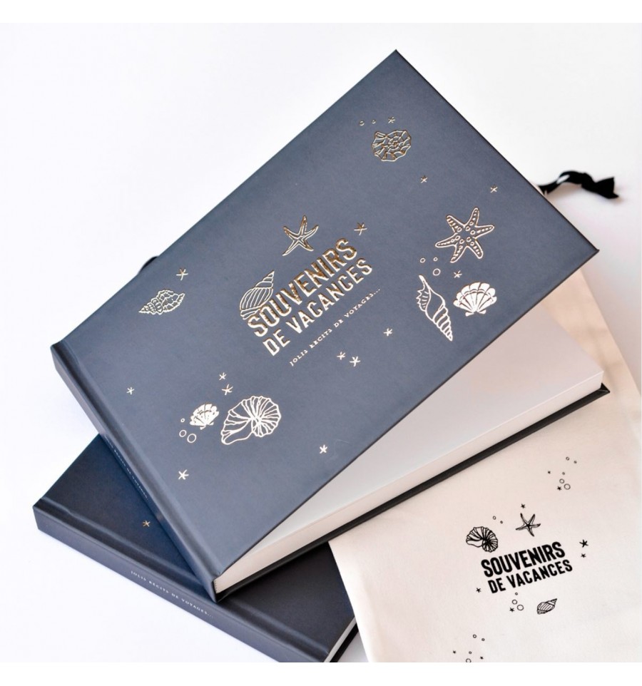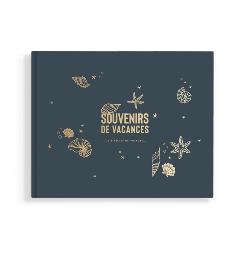 Ce livre de souvenirs Zakuw bleu marine avec des éléments marqués à chaud or brillant, sera le livre parfait pour accueillir vos souvenirs de vacances.
