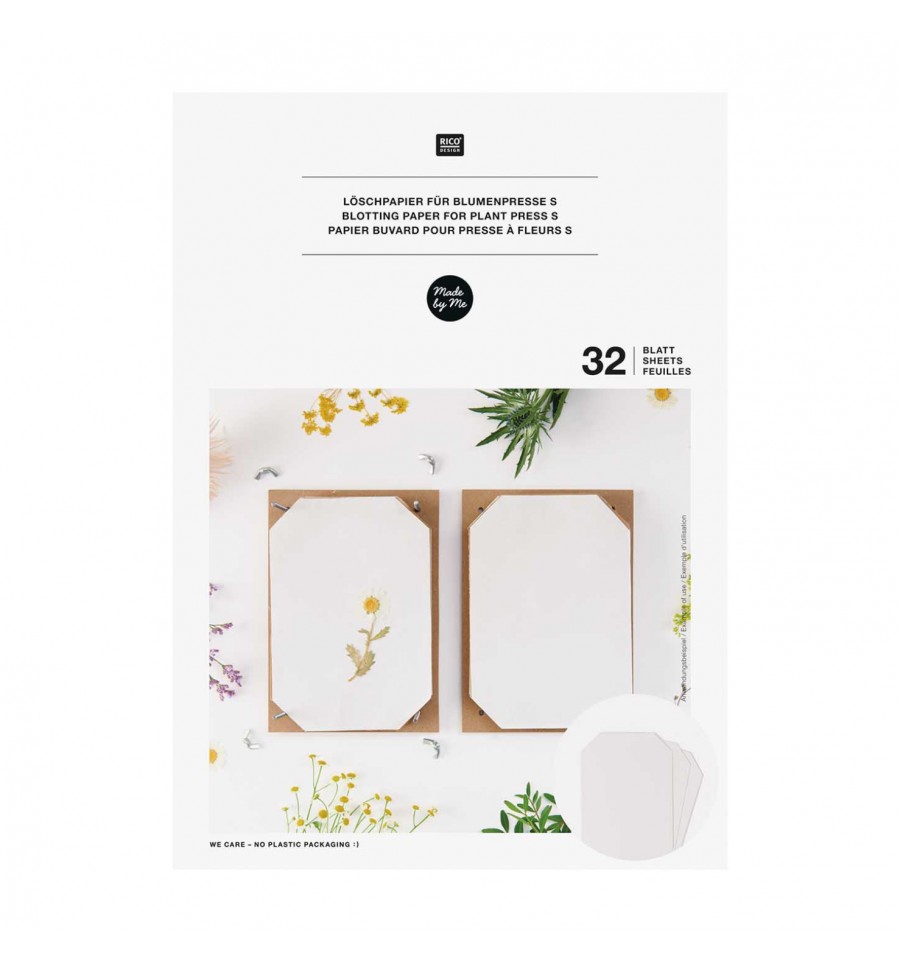 Ces papiers buvards (set de 32 feuilles), vont vous permettre de sécher vos fleurs, feuilles et herbes dans votre presse à fleurs.