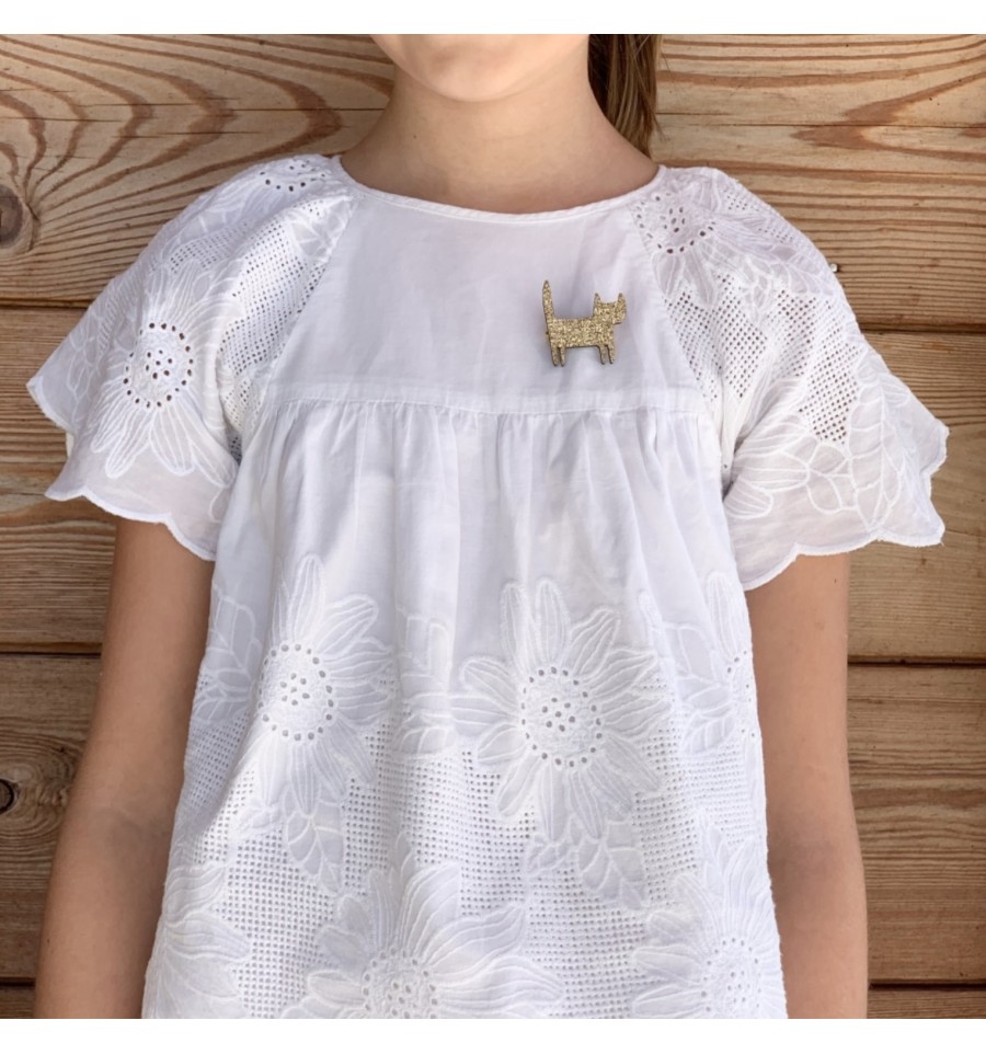 Broche chat doré à paillettes - Les Petites Hirondelles