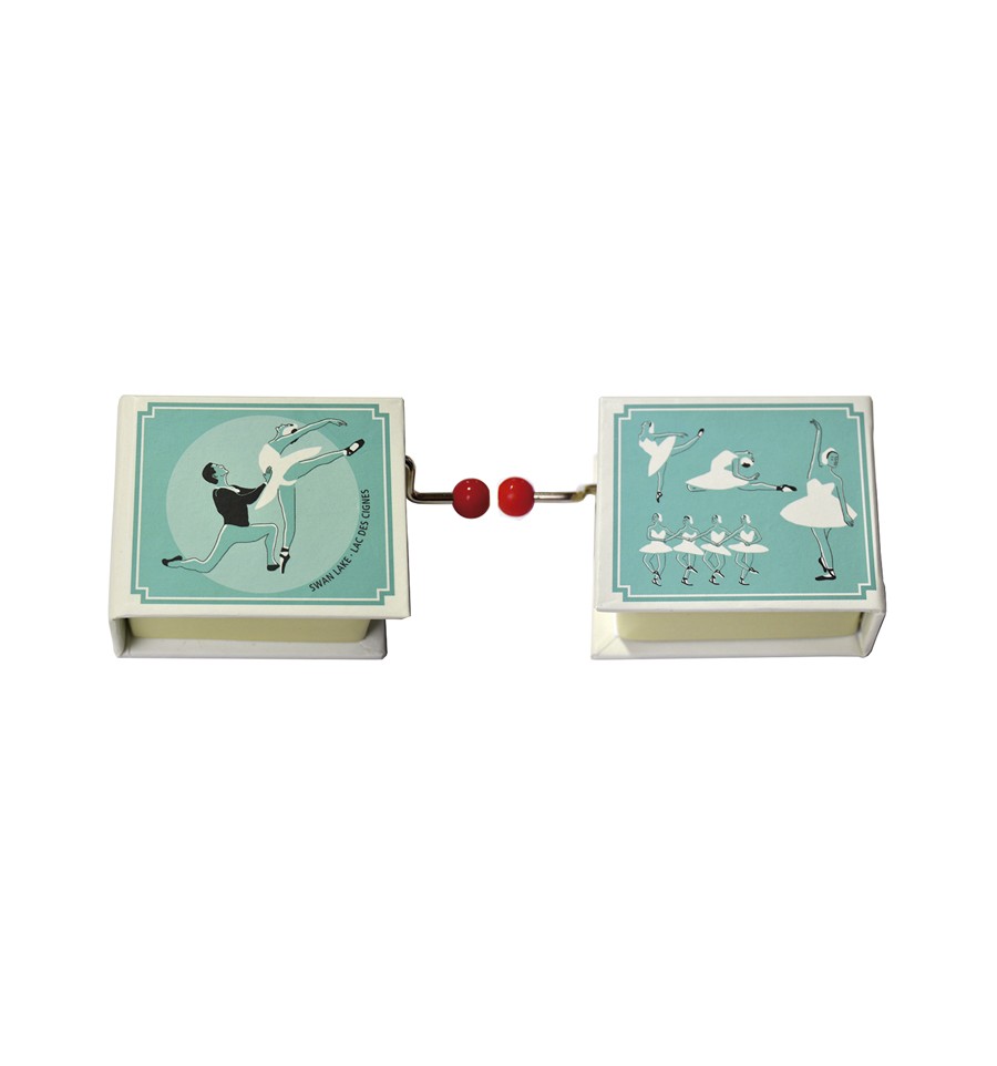 Grâce à sa petite manivelle mécanique, cette boite à musique vous fera (re)découvrir la célèbre mélodie du "Lac des Cygnes" composée par Tchaïkovski.