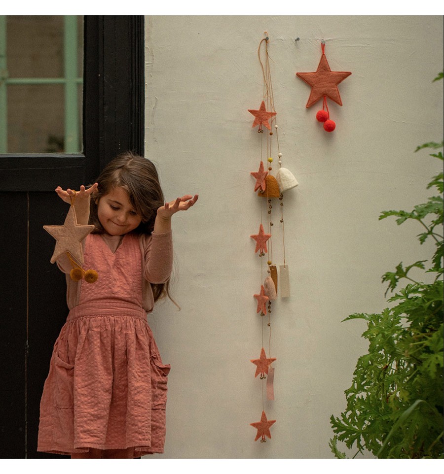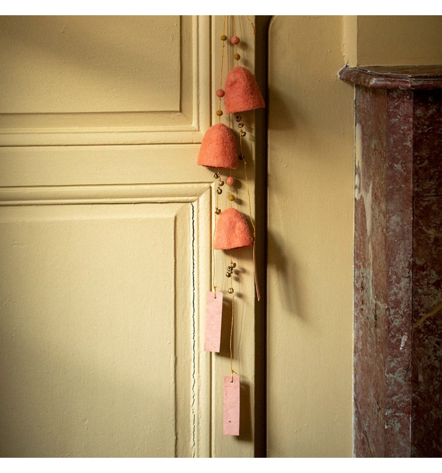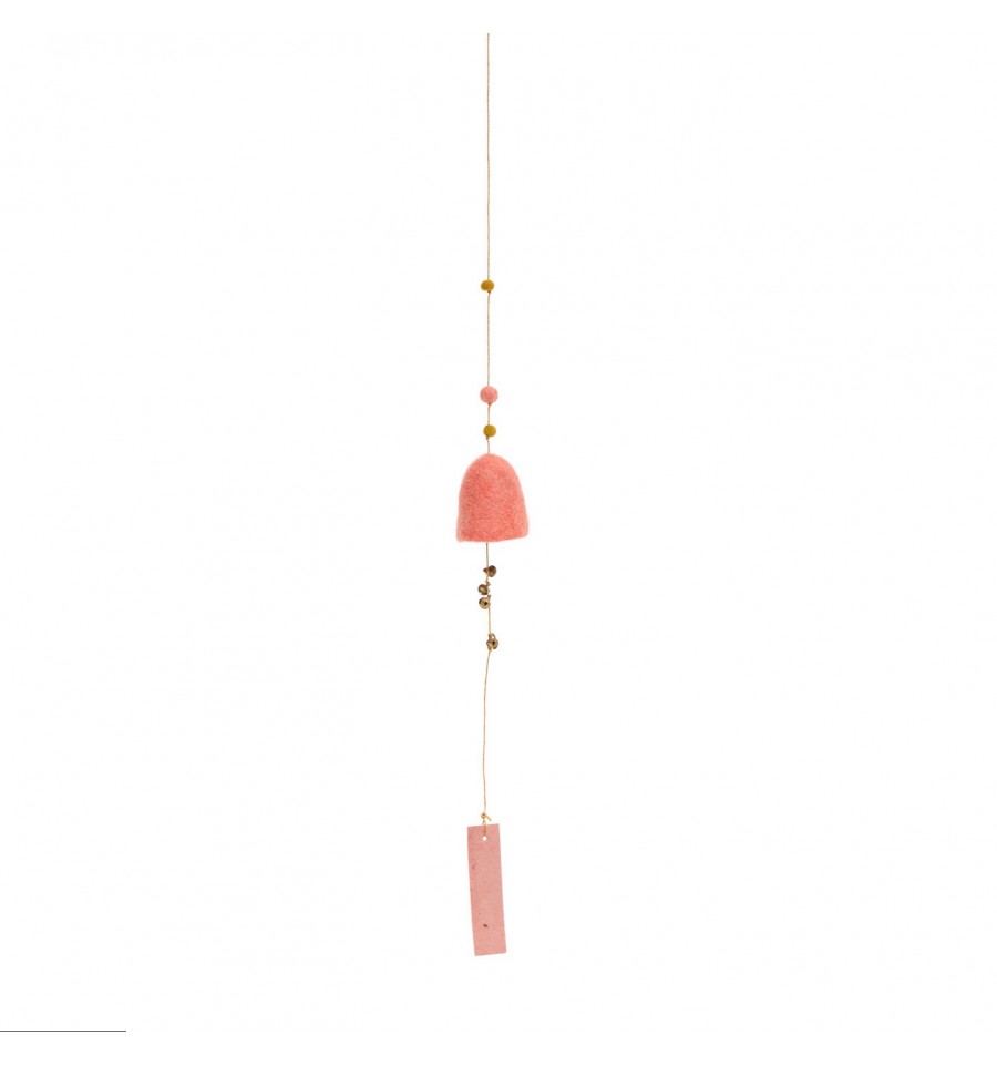 Laissez-vous bercer par la sérénité des temples népalais au son des grelots en laiton de cette jolie suspension cloche couleur rose litchi.