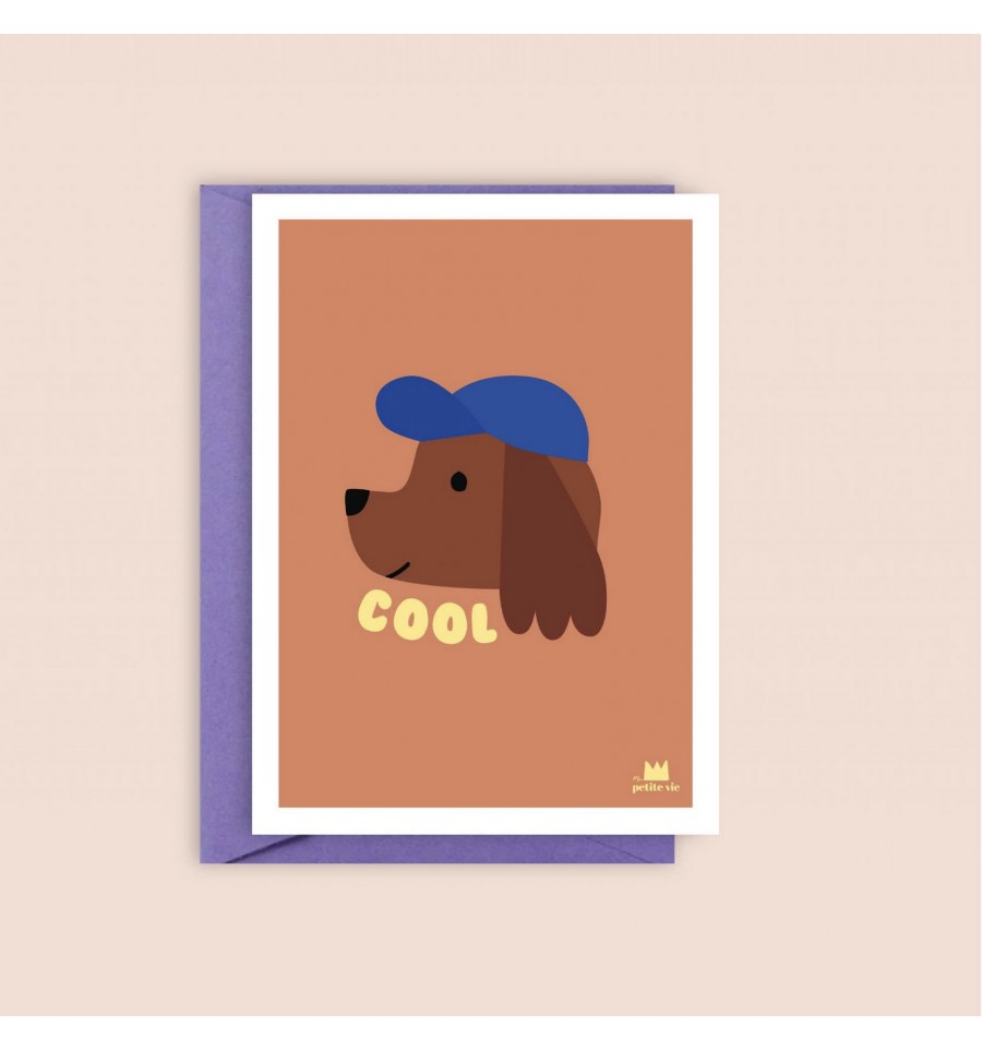 Avec une tête de chien à casquette, cette jolie carte respire la coolitude !