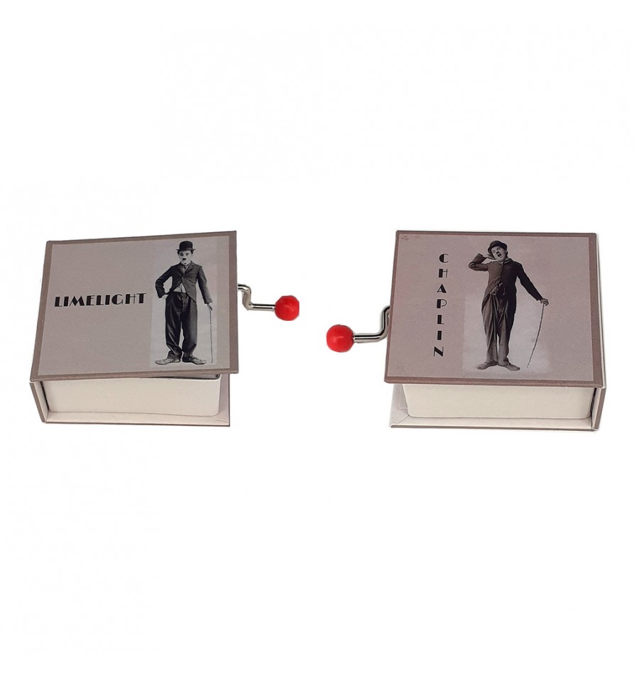 Grâce à sa petite manivelle mécanique, cette boite à musique vous fera (re)découvrir l'air célèbre du film "Les Feux de la rampe" de Charlie Chaplin.