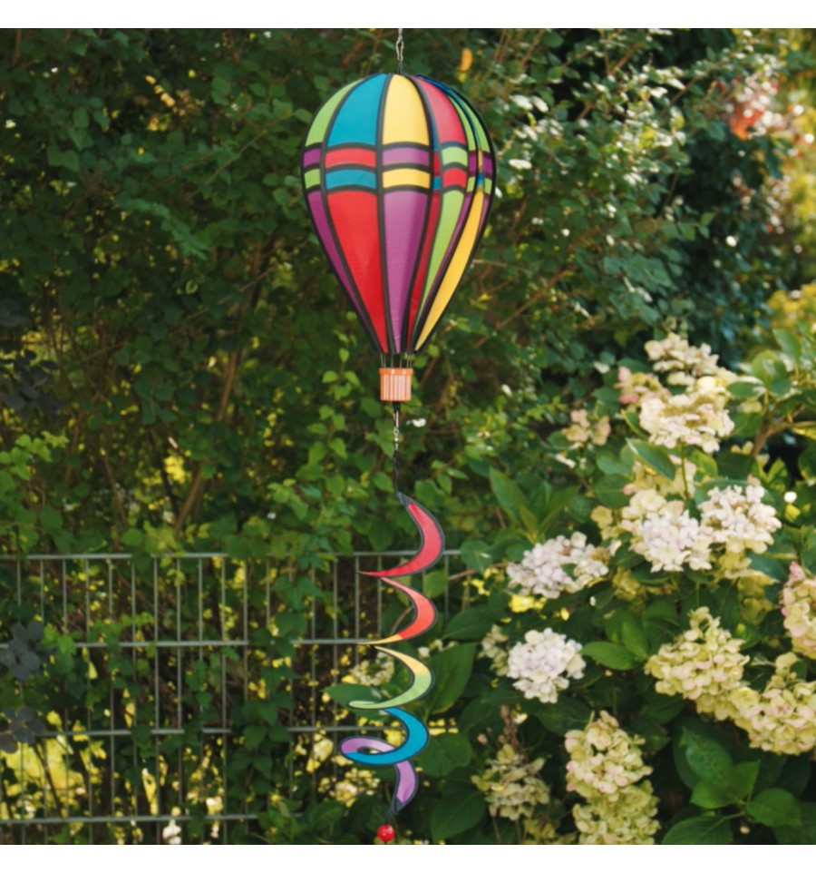 Colours in Motion présente son éolienne en forme de montgolfière : le vent la fera tournicoter pour une décoration mouvante. Constituée d'une montgolfière et d'une spirale, elle peut convenir à l'extérieur comme à l'intérieur.