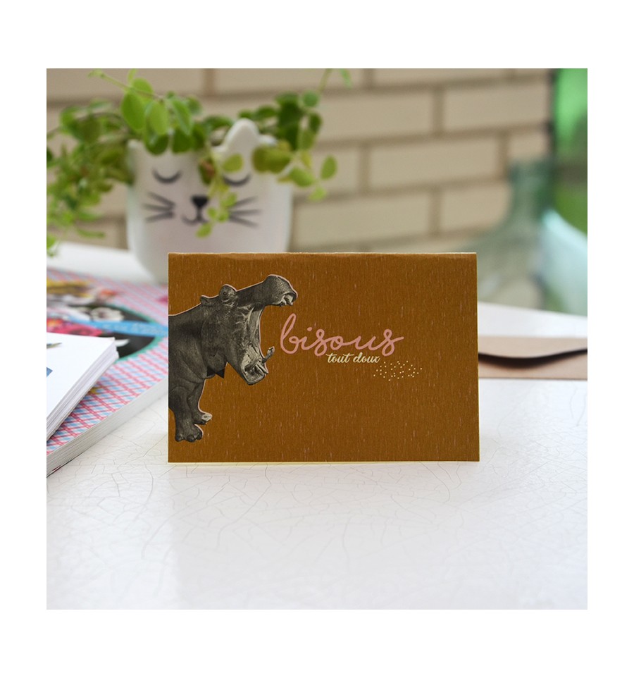 Cette carte adorable représente un hippopotame qui envoie des bisous tout doux !