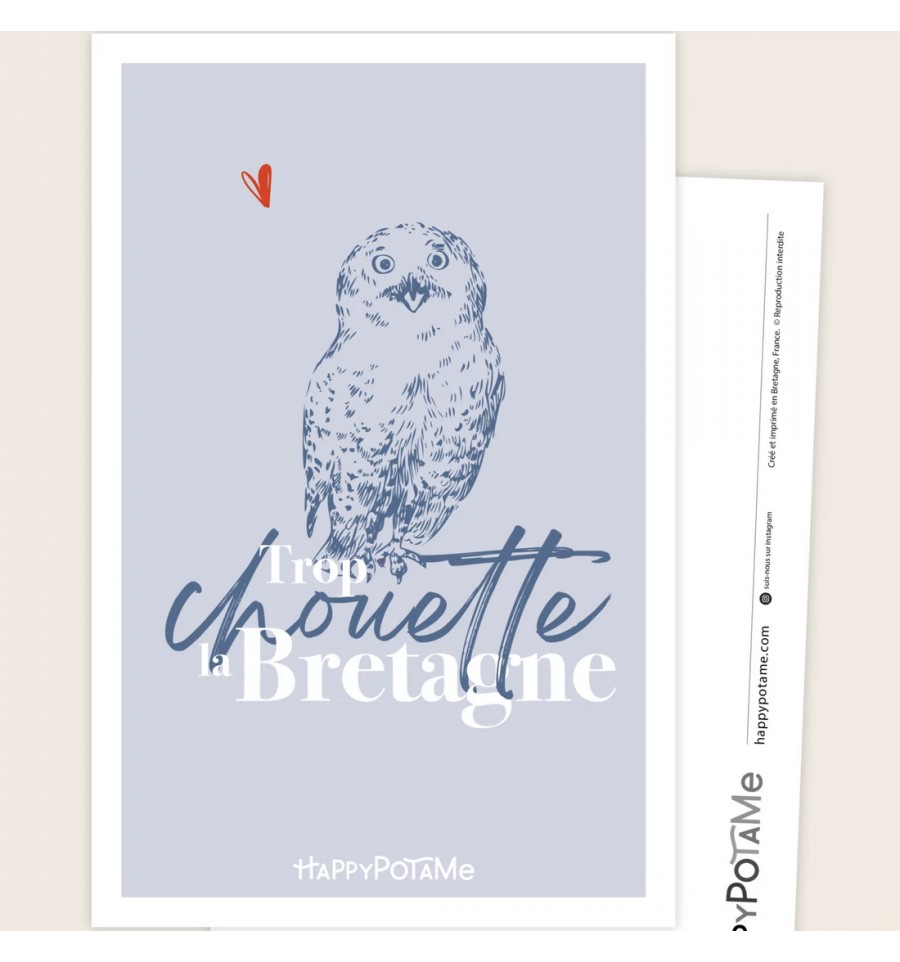 Carte "Trop chouette la Bretagne", conçue d'après une illustration réalisée à la main, et avec amour.