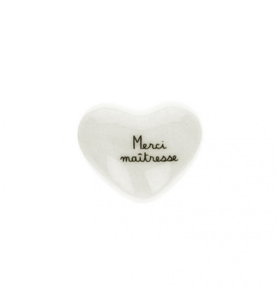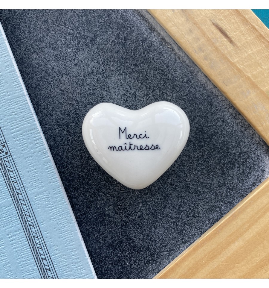 Un petit coeur en céramique que la maîtresse pourra garder sur soi comme porte bonheur, et pour se rappeler combien elle est aimée.