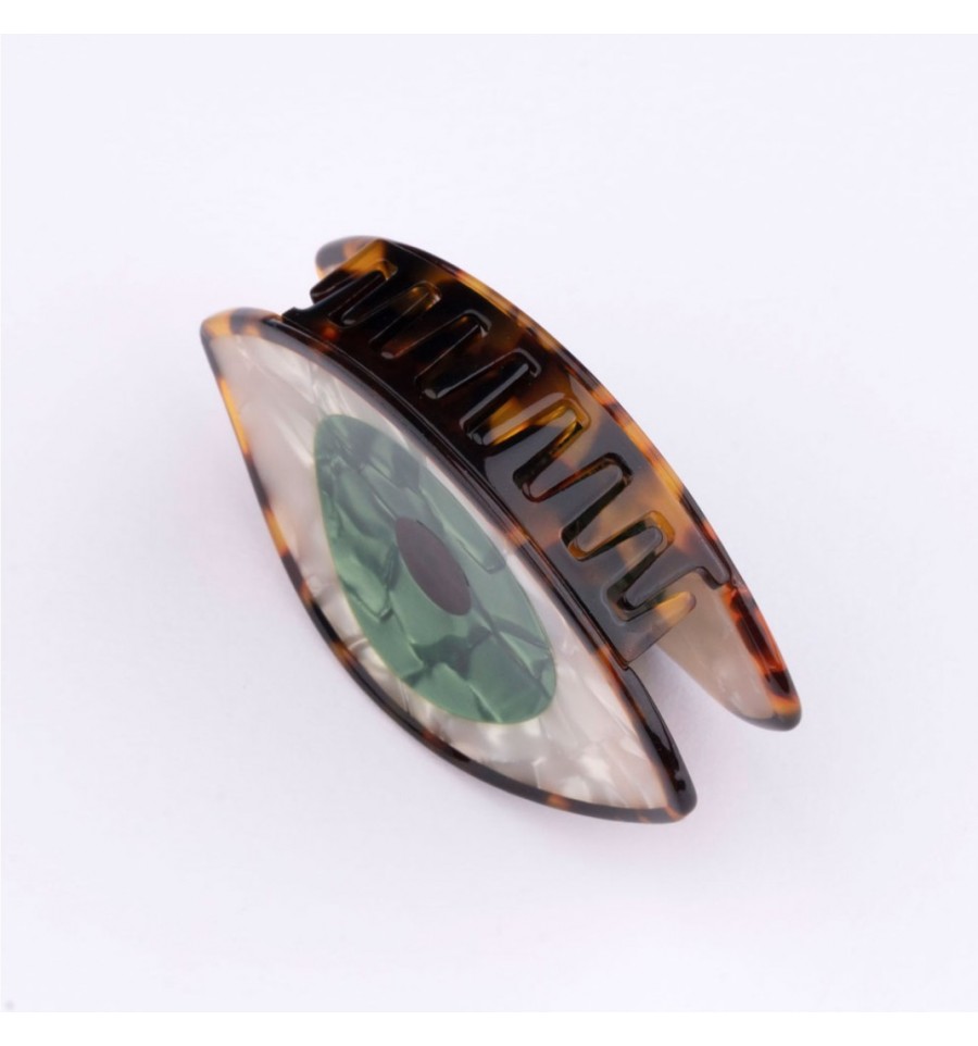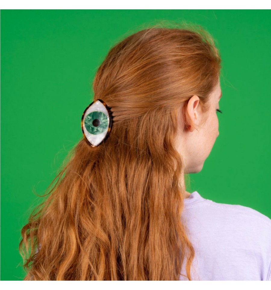 Coucou Suzette a imaginé cette grande pince à cheveux en forme d'oeil vert.