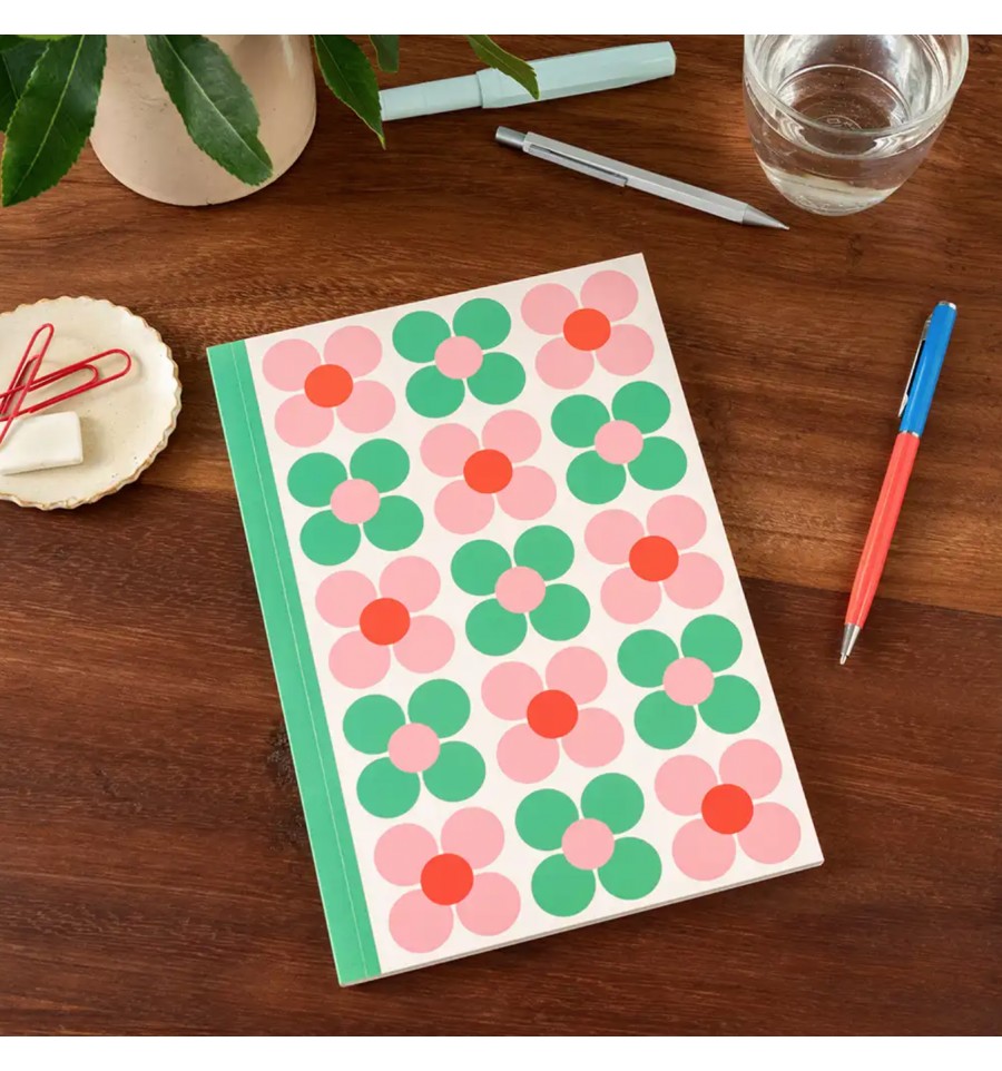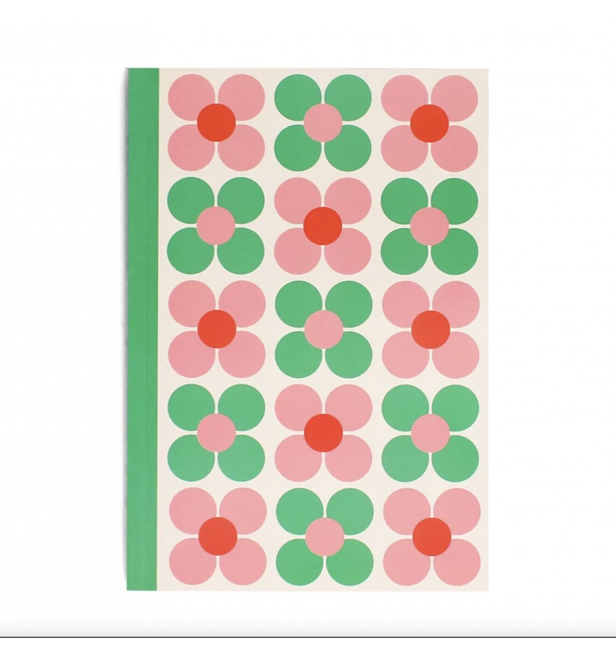 Un joli carnet A5 Rex London aux motifs de jolies fleurs de couleur rose et verte imaginé par Rex London.