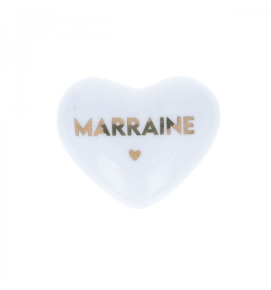 Craquez pour ce petit coeur en céramique avec le mot "marraine" inscrit en doré !