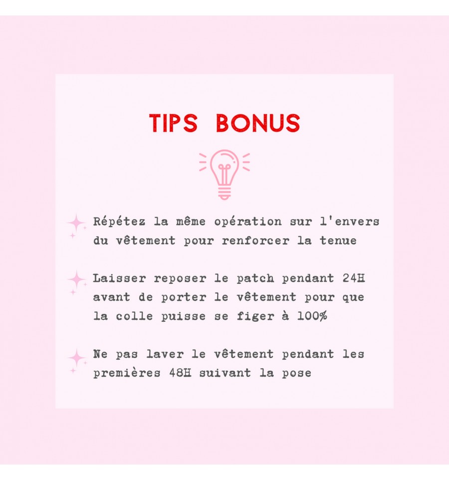 Les magnifiques patches thermocollants Malicieuse sont lavables en machine à 30°C.