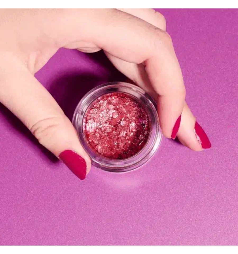 Le gel pailleté imaginé par Sisi La Paillette associe notre ingrédient-soin préféré, le karité, et leur paillettes iconiques Tagadamour (rouge) pour une application simple et rapide.