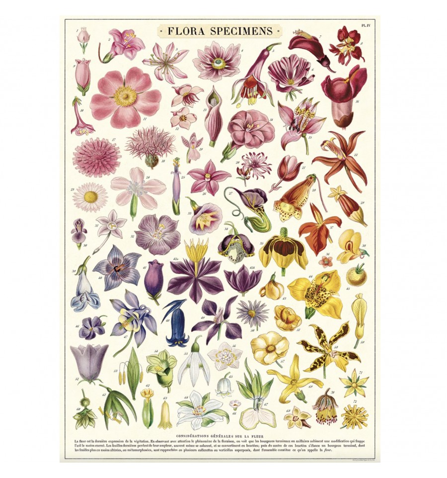 Voici une affiche de la jolie marque Cavallini, représentant un arc-en-ciel de fleurs ! Qu'elles soient en boutons, pétales ou graines, retrouvez une trentaine de fleurs différentes.