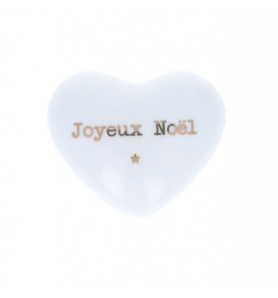 Jolie et tendre pensée pour ce coeur en céramique trop mignon, craquez pour ce grigri blanc avec joyeux noël écrit en doré.