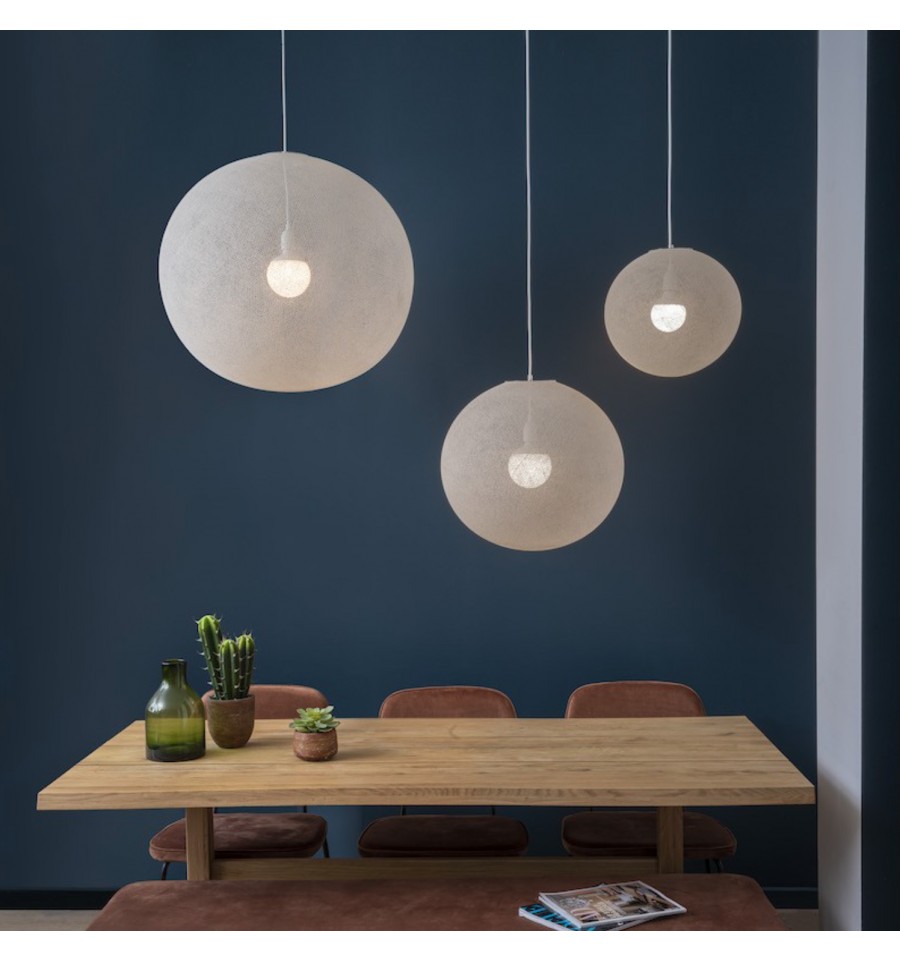 La suspension fait 50 cm de diamètre et se décline en de nombreux coloris différents. (visible sur notre site internet)