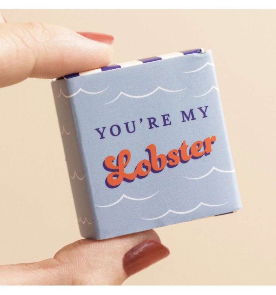 Ici c'est de l'amour et du bonheur que l'on propose, dissimulé dans une jolie boîte en carton bleu pâle "You are my lobster", découvrez à l'intérieur un homard souriant.