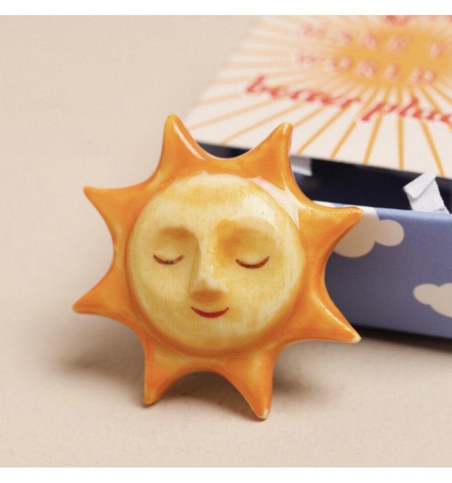 Matières : soleil en céramique, boite en carton