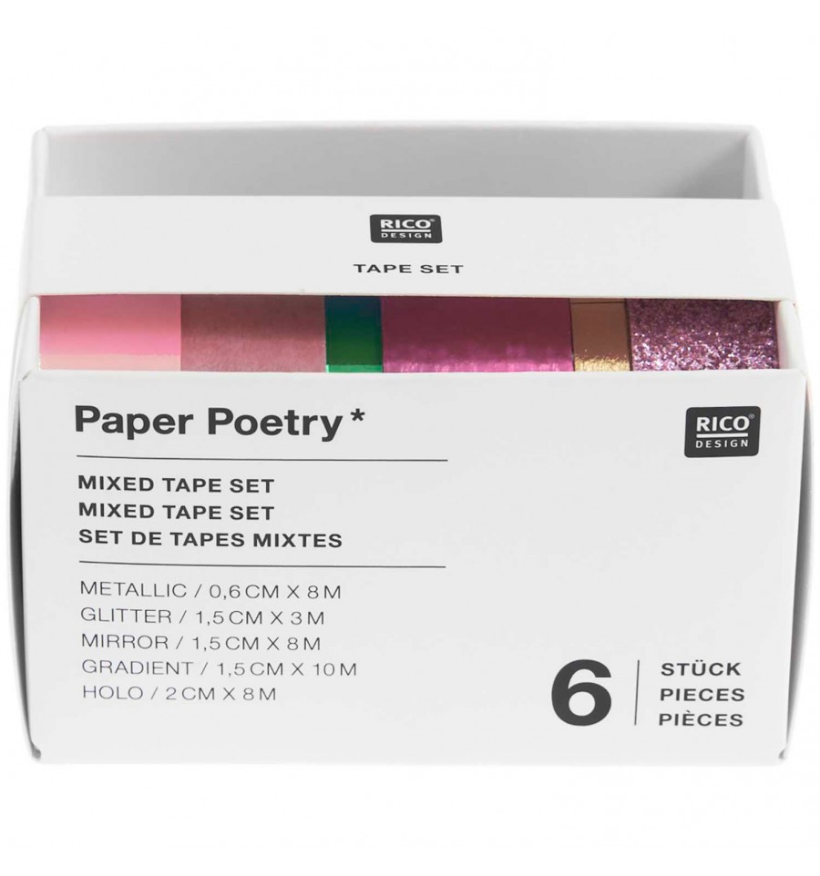 Ces rouleaux de masking tape (scotch décoratif) Rico Design ont pour particularité de ne pas abîmer les peintures ou les tapisseries. On pourra ainsi s'en donner à coeur joie avec leurs motifs et leurs belles couleurs pour accrocher photos et dessins sur nos murs sans craindre de les endommager.