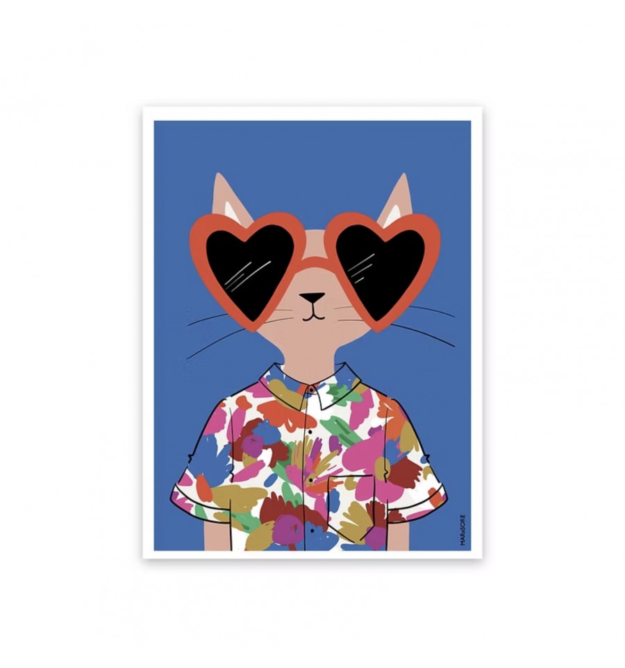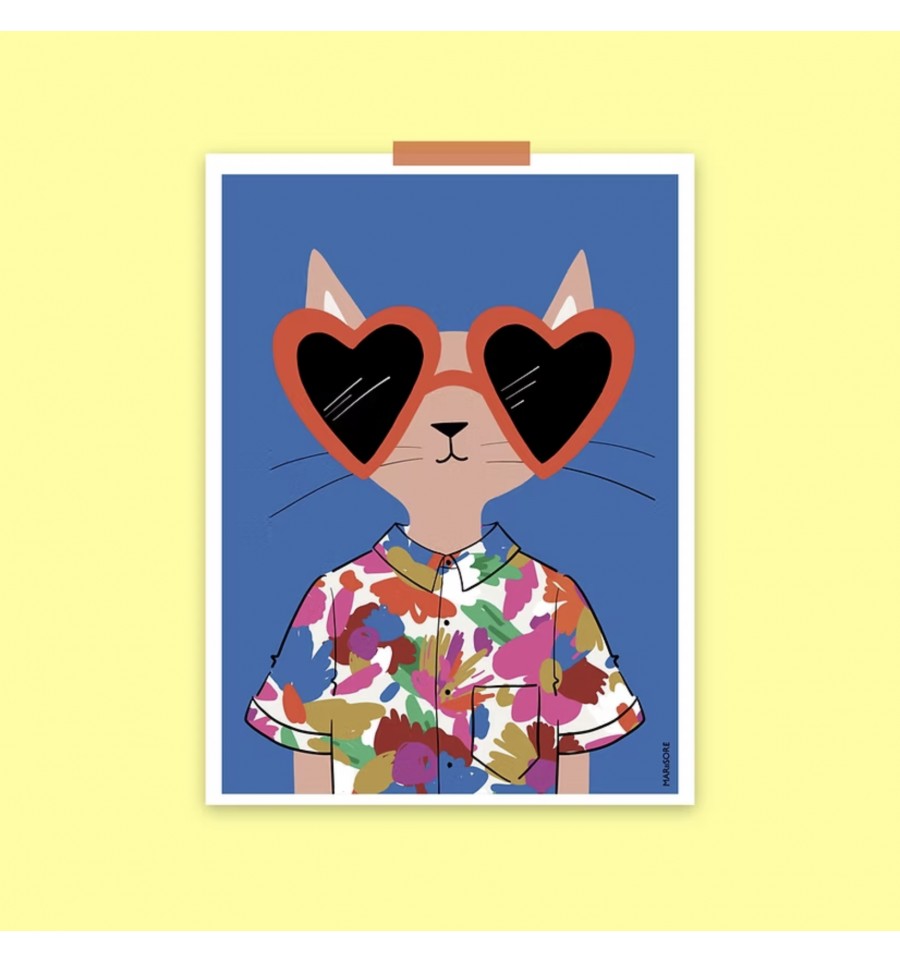 Ce chat est d'un cool !! Caché derrière ses grandes lunettes en formes de gros cœurs rouges, il porte une chemise qui rendrait jaloux Magnum, Mich Buchannon et Jim Hopper réunis (vous avez toutes les ref' ?)