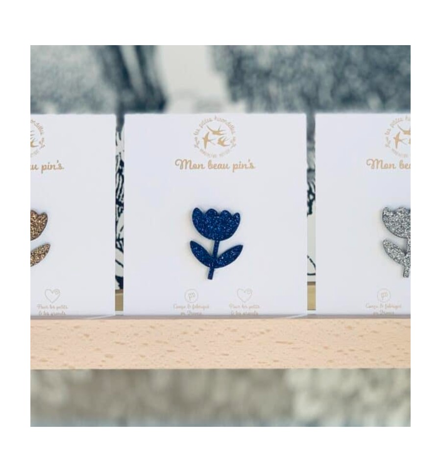 Voici un beau pin's en forme de fleur bleue imaginé par Les Petites Hirondelles spécialement pour les coquettes.