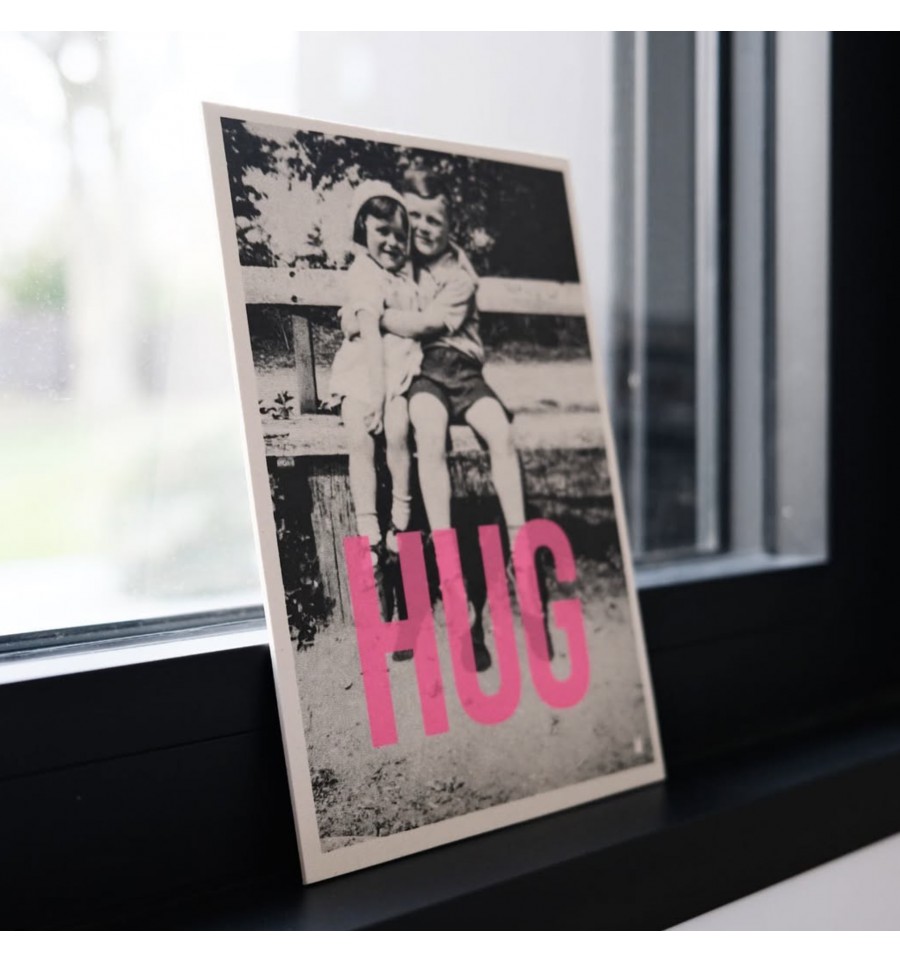 Offrez la carte "Hug" (= calin) à votre super copine, à vos amis, pour mettre dans la cuisine ou chez votre mamie, en auto-cadeau, en déco, au-dessus de votre lavabo, bref tous les endroits conviendront à cette magnifique carte.
