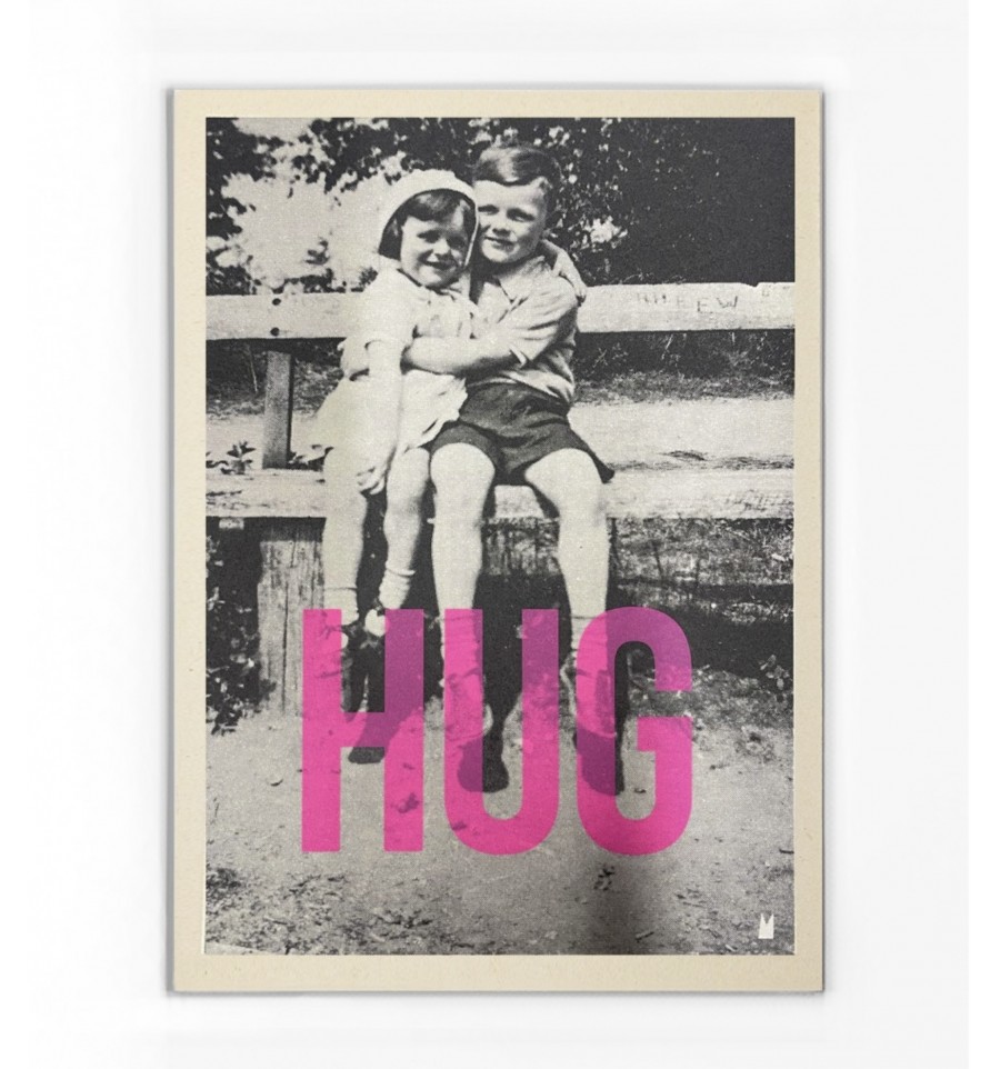 La carte "Hug" est sérigraphiée de manière artisanale à Lille sur du carton bois 100% issu de matériaux recyclés et certifié PEFC.