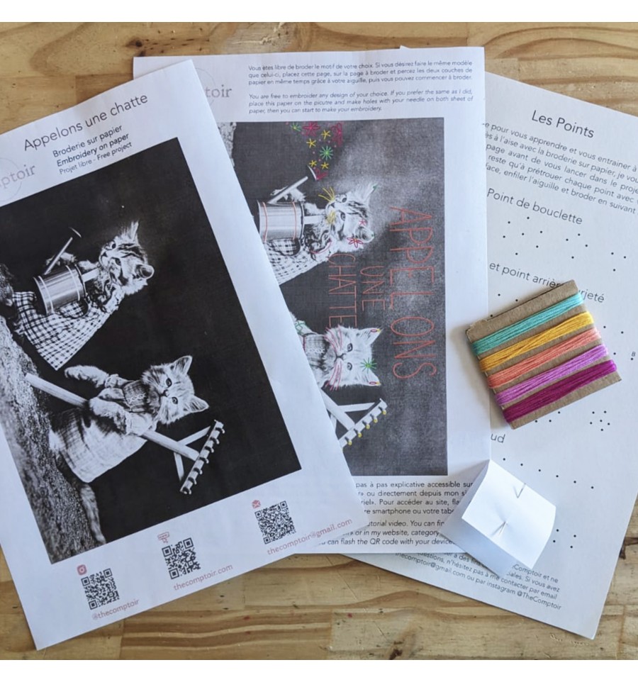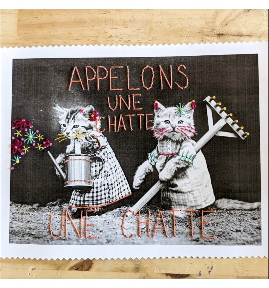 Le kit de broderie "Appelons une chatte" vous permet de créer de vos propres mains une jolie déco à offrir ou à garder pour soi.