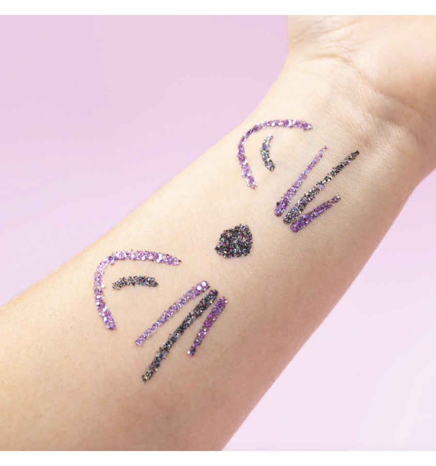 Décollez le modèle, appliquez sur la peau, pailletez, retirez le pochoir, et HOP c'est terminé !