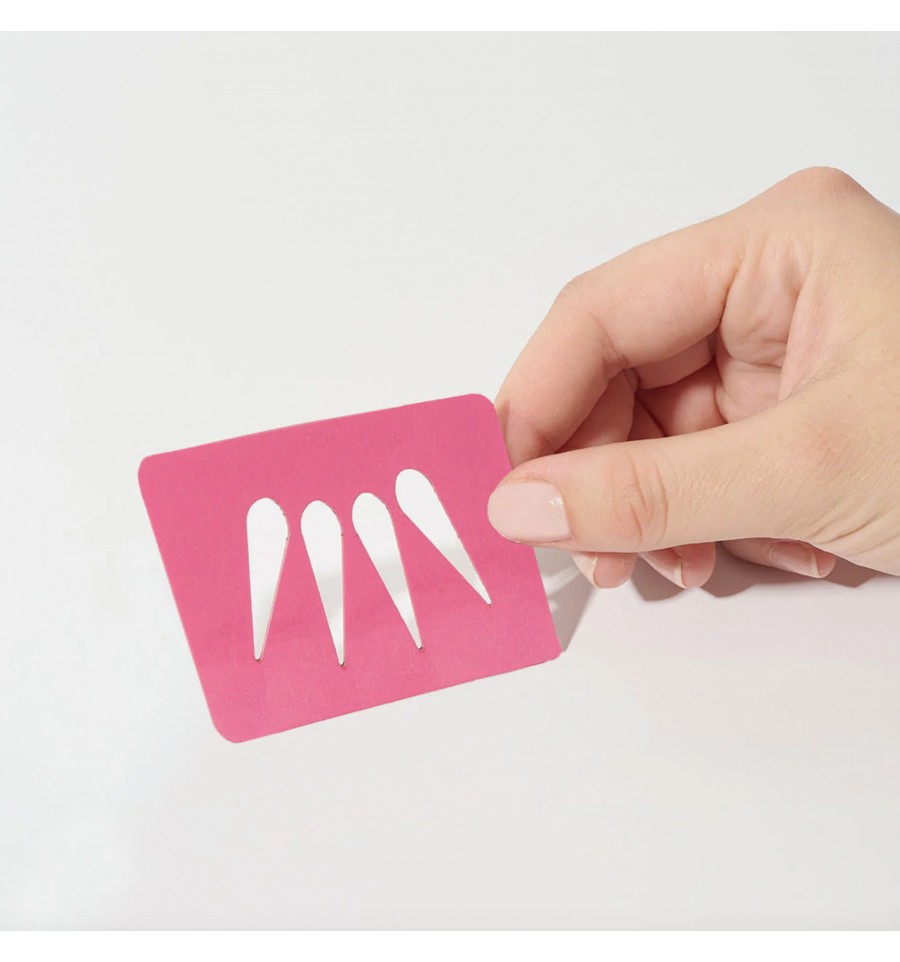 - Décollez doucement votre pochoir de votre peau, essuyez-le et replacez-le sur son support.