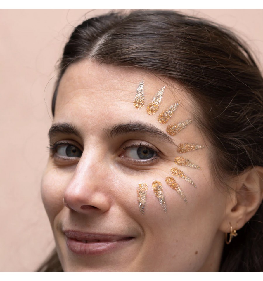 Décollez le modèle, appliquez sur la peau, pailletez, retirez le pochoir, et HOP c'est terminé !