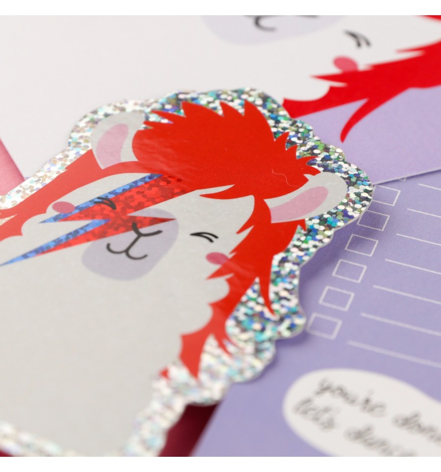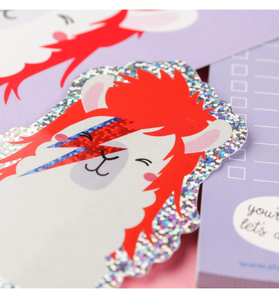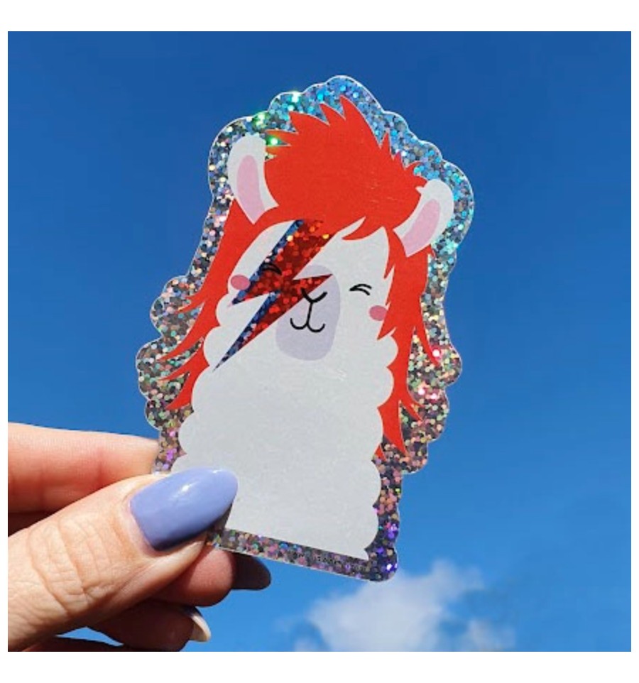 Amoureux des autocollants, n'allez pas plus loin. Voici un drôle de lama avec un éclair rouge sur le front et entouré de paillettes.