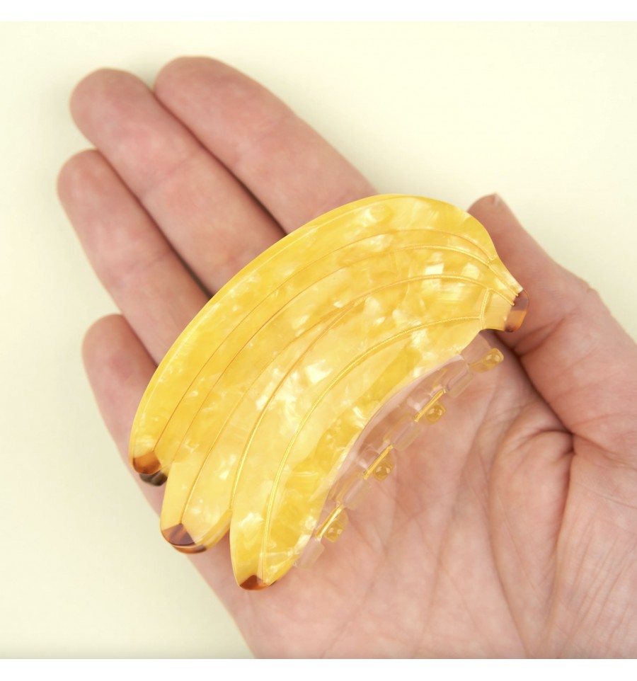 Coucou Suzette nous régale encore avec une création fruitée et décalée : une pince à cheveux en forme de banane ultra stylée. Parfaite pour dompter ta crinière tout en affichant ton amour inconditionnel pour ce fruit blindé de potassium (et aussi les accessoires qui ne se prennent pas trop au sérieux).