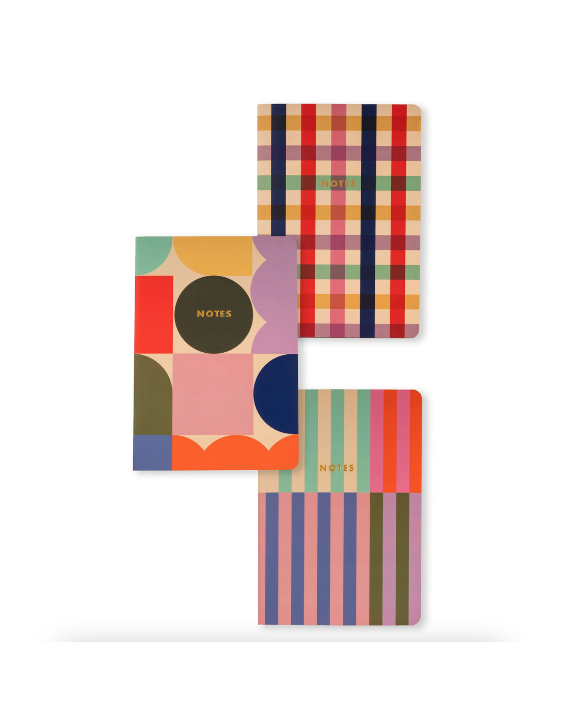 Parce qu'on n'a jamais assez de carnets pour gribouiller, voici 3 jolis carnets assortis.