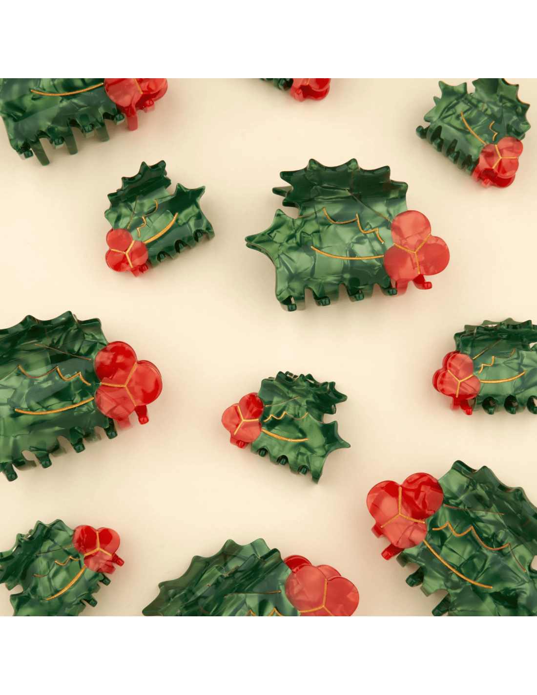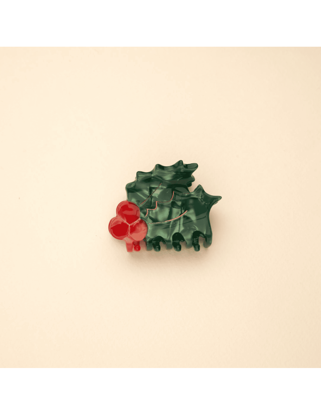Cette jolie petite pince à cheveux en forme de houx est signée Coucou Suzette.
