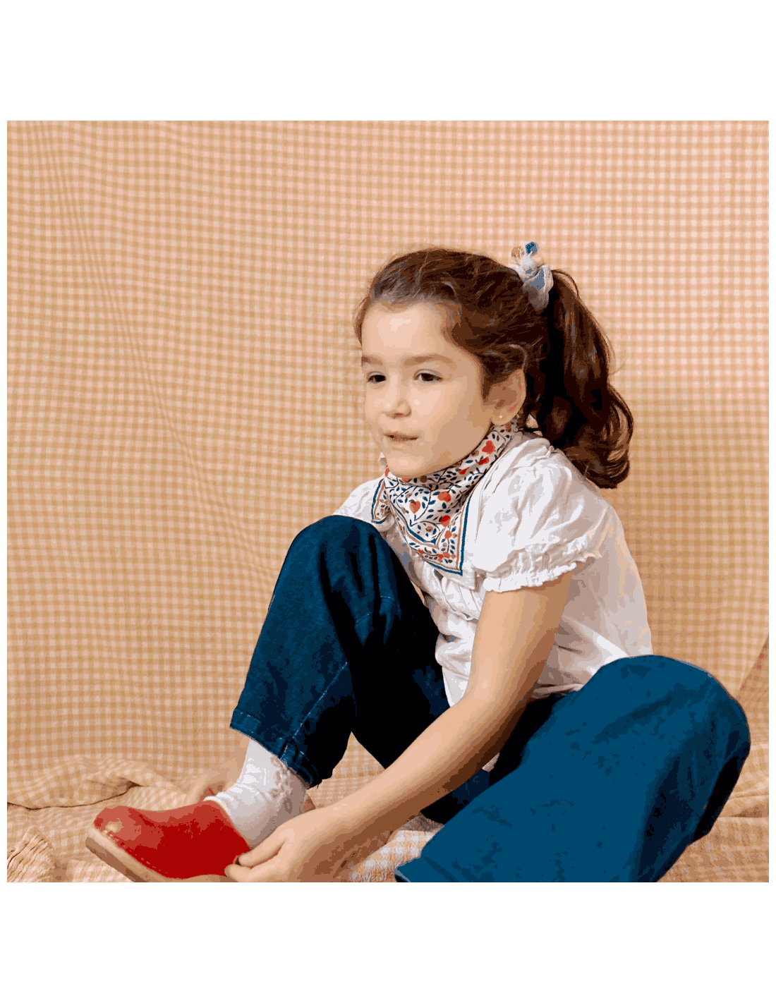 Motif imprimé grâce à la technique indienne du block-print, les couleurs sont réalisées à partir de pigments naturels.