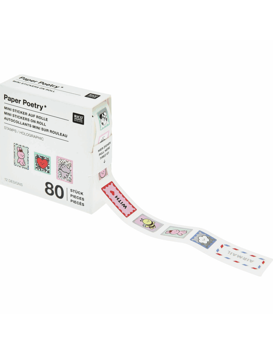 Ce set de 80 mini autocollants inspirés des timbres poste sont à coller partout (lettres d'invitation, cadeaux décorations...)